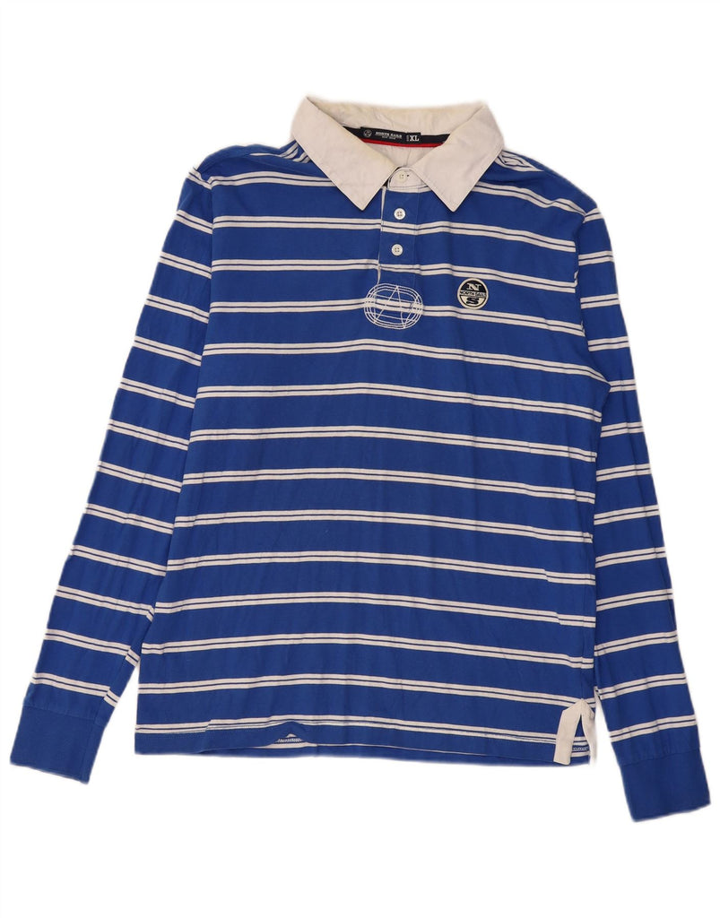 NORTH SAILS Mens Long Sleeve Rugby Polo Shirt XL Blue Striped Cotton