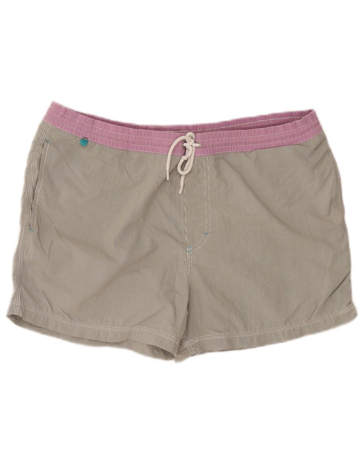 - AI Description: These North Sails mens swimming shorts are crafted from lightweight polyamide microfibre for quick drying comfort. They feature a comfortable elasticated pink waistband with a pull-on closure. The regular fit ensures ease of movement. A subtle pinstripe pattern runs through the grey fabric. Practical pockets and a branded logo add functional detail.
