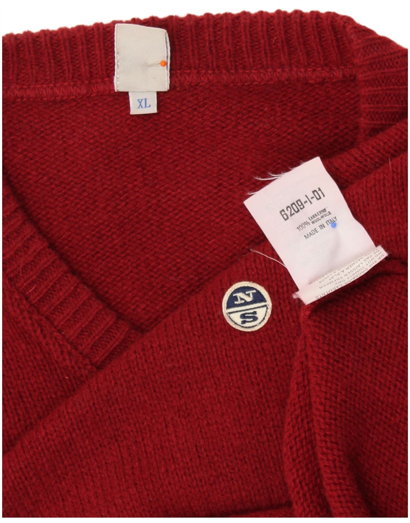 NORTH SAILS Mens V-Neck Jumper Sweater XL Burgundy Wool