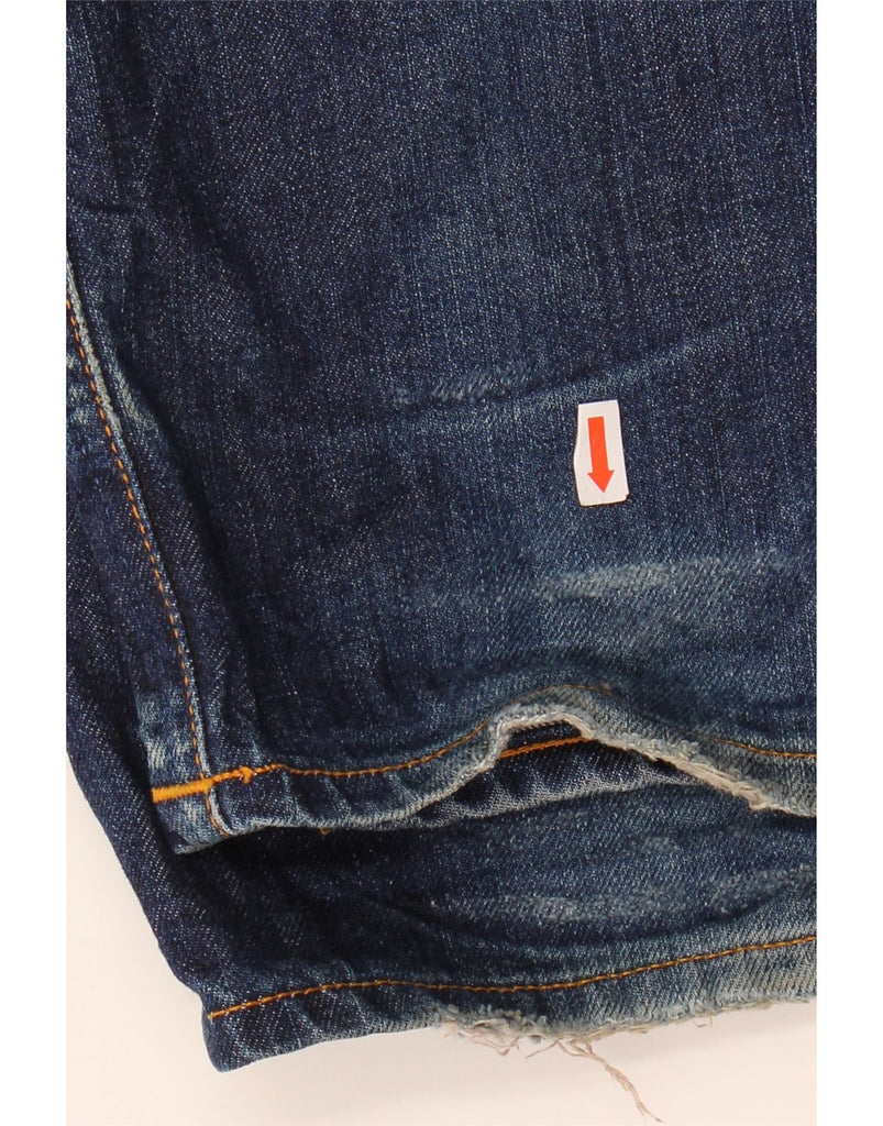 - AI Description: These Nudie Jeans mens straight jeans are crafted from 100 percent organic cotton denim. The blue fabric features a distressed finish for a lived-in aesthetic. A button closure secures the regular fit waistband. Straight legs offer a classic, comfortable silhouette. Functional pockets complete the practical design.