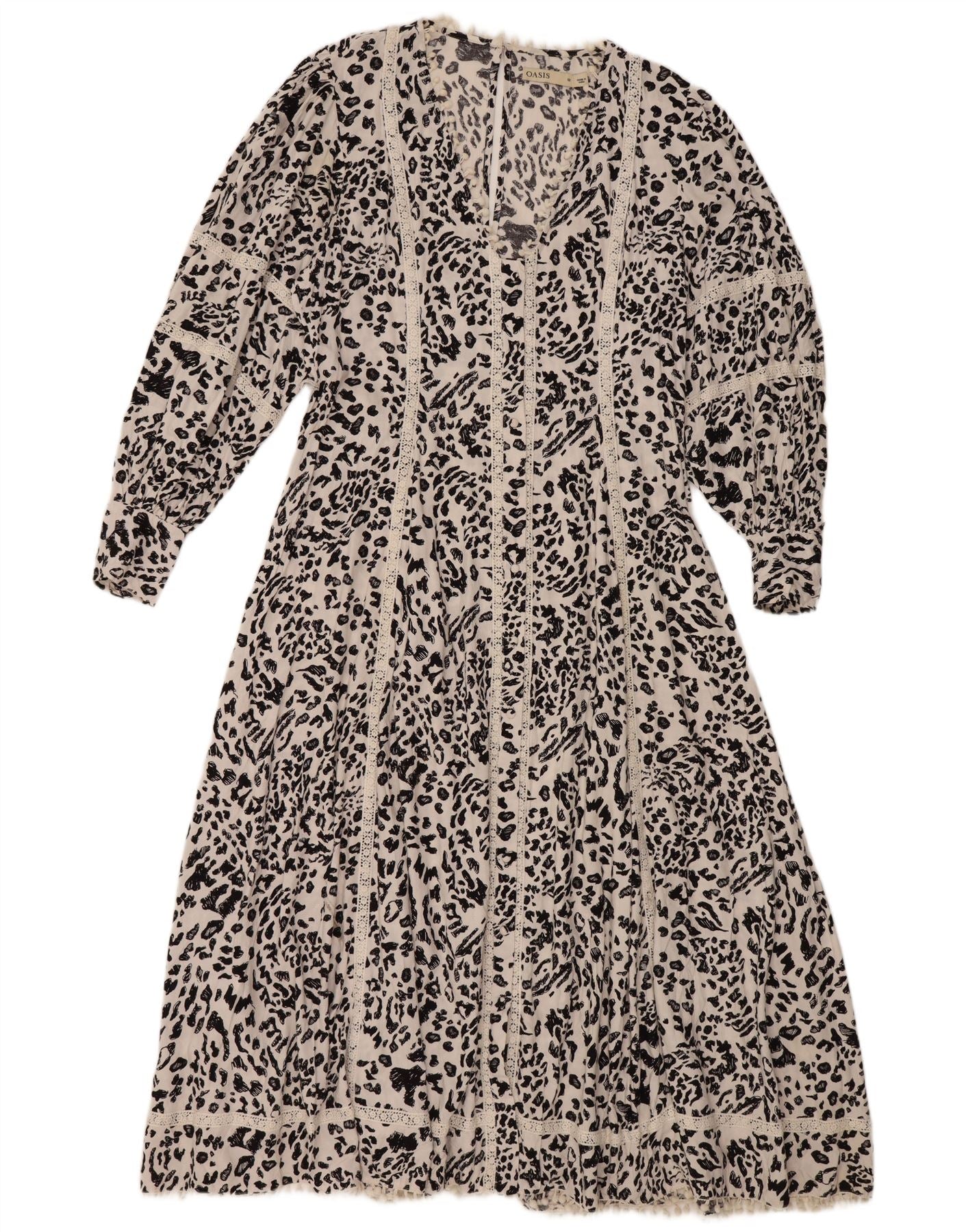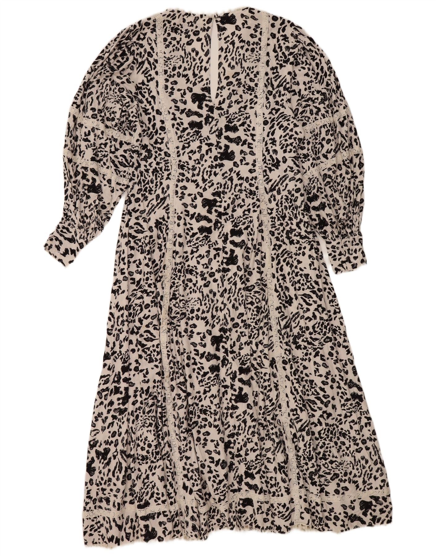 OASIS Womens Long Sleeve Maxi Dress UK 12 Medium White Animal Print