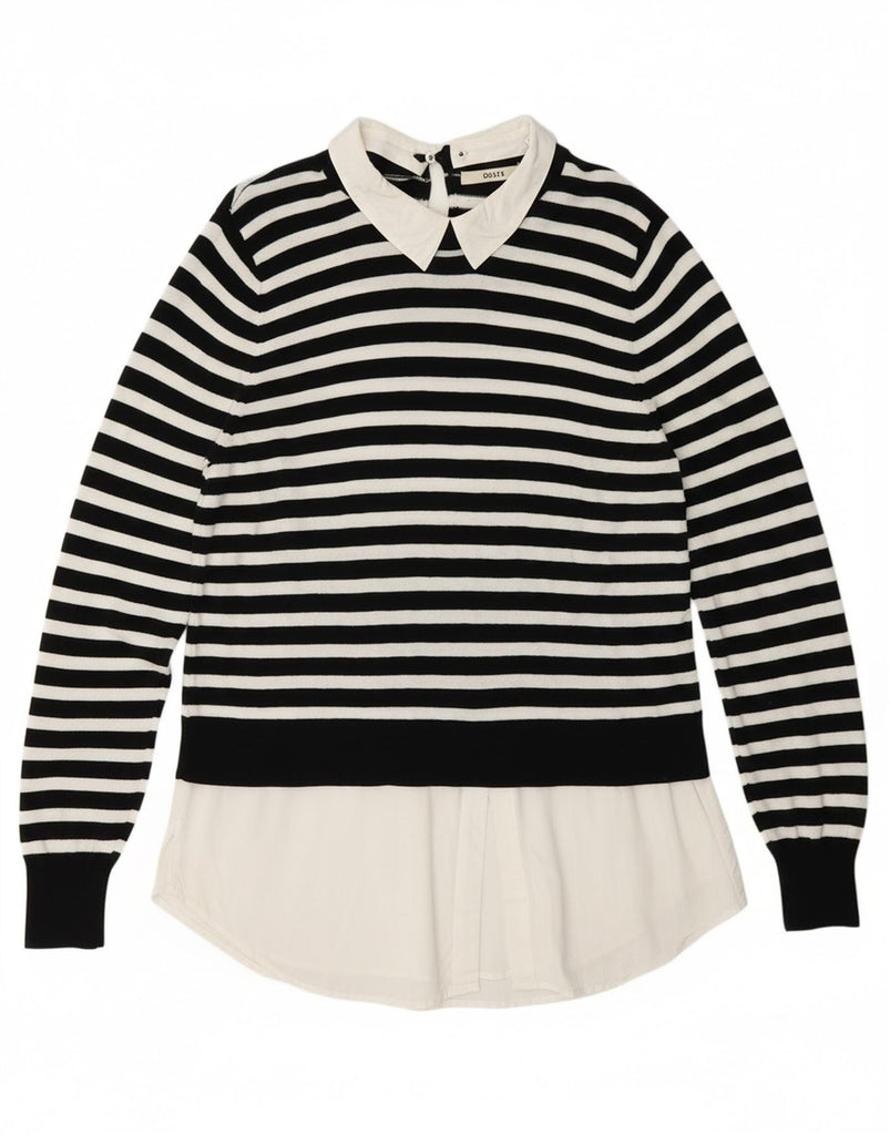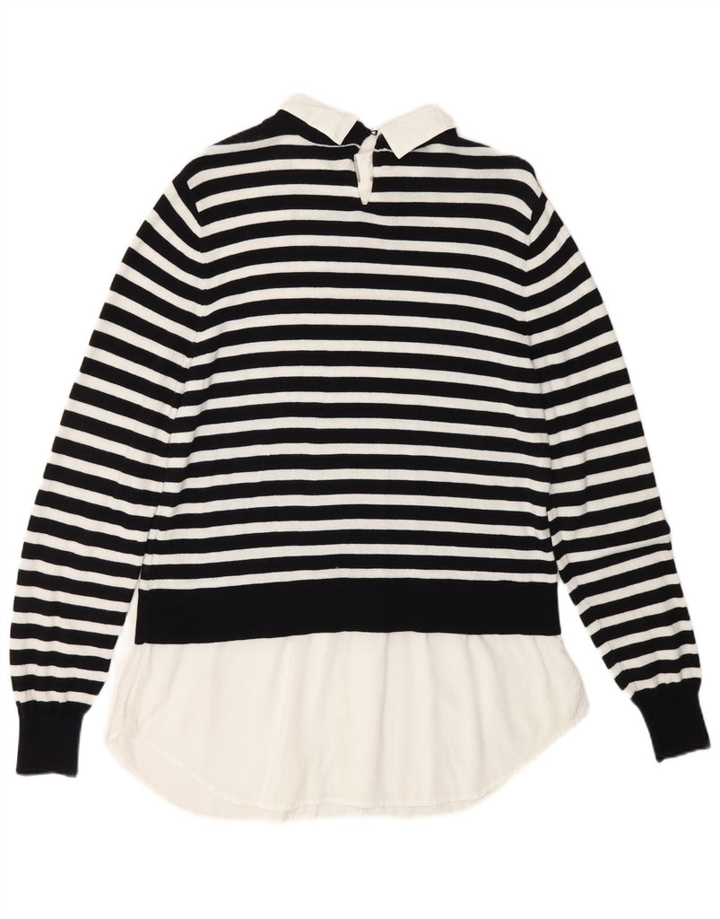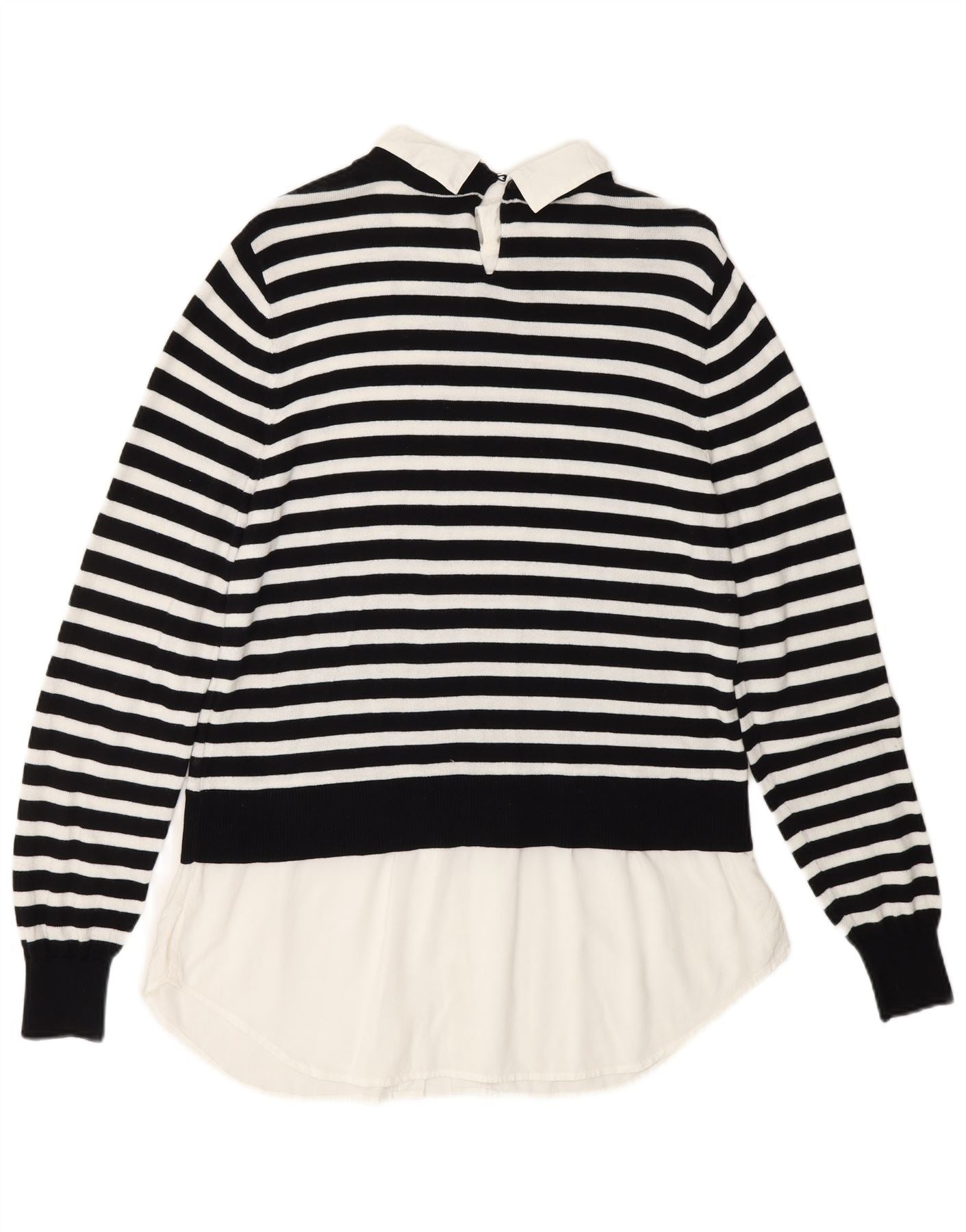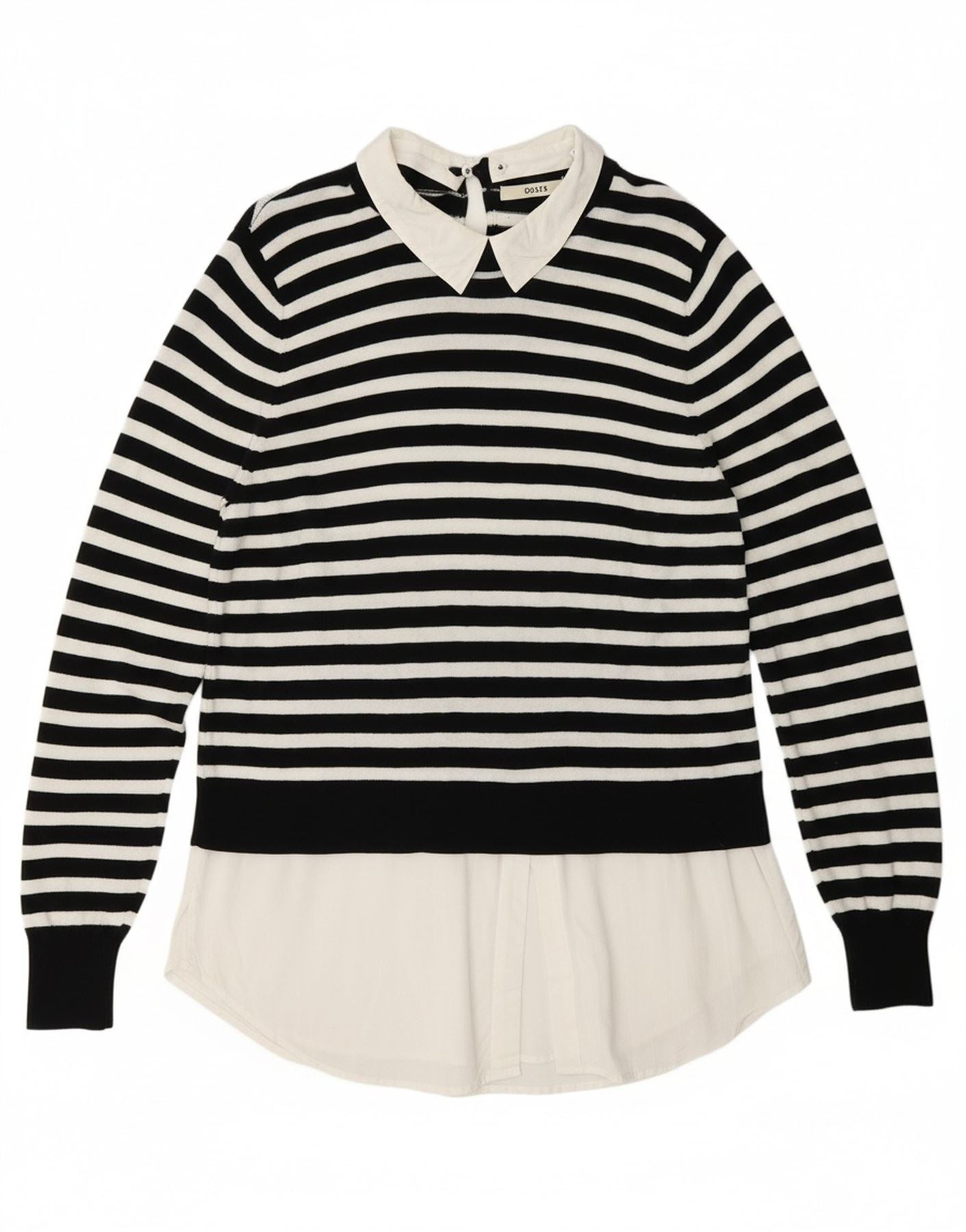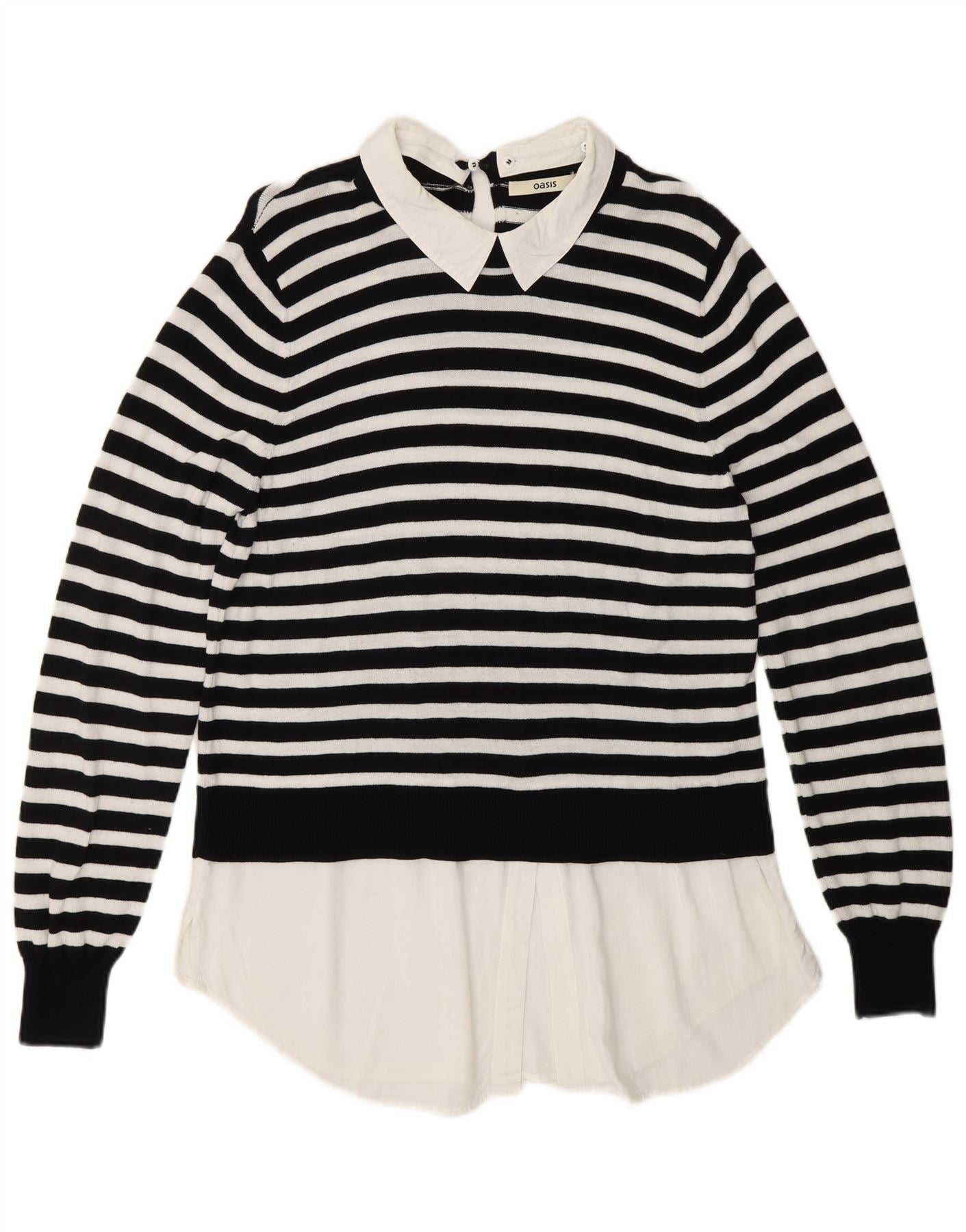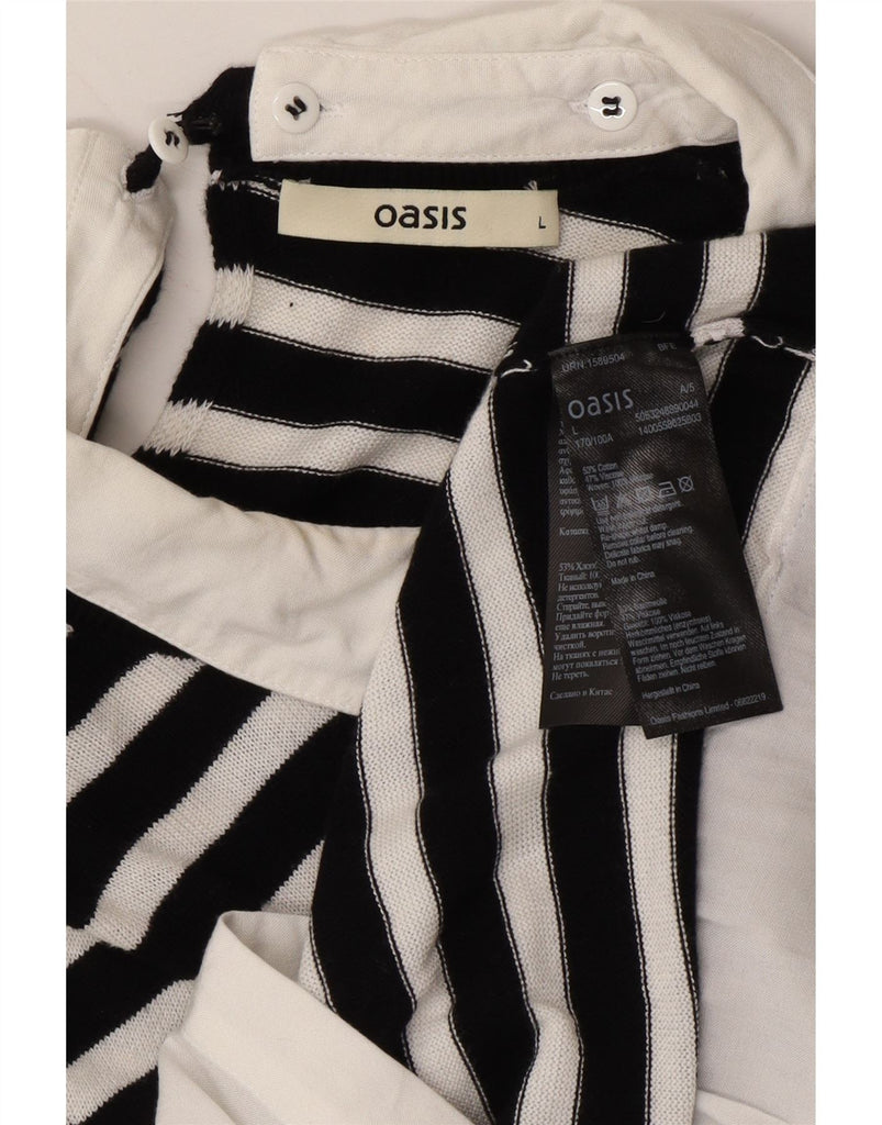 OASIS Womens Polo Neck Jumper Sweater UK 14 Large Black Striped Cotton