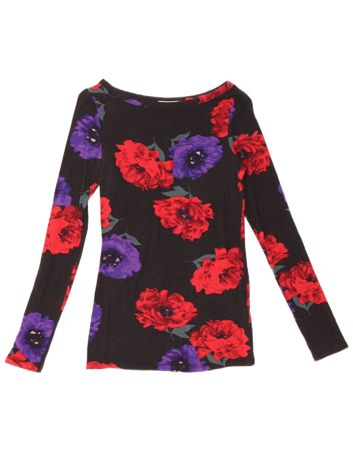 Oasis Womens Top Long Sleeve UK 4 XS Black Floral Viscose