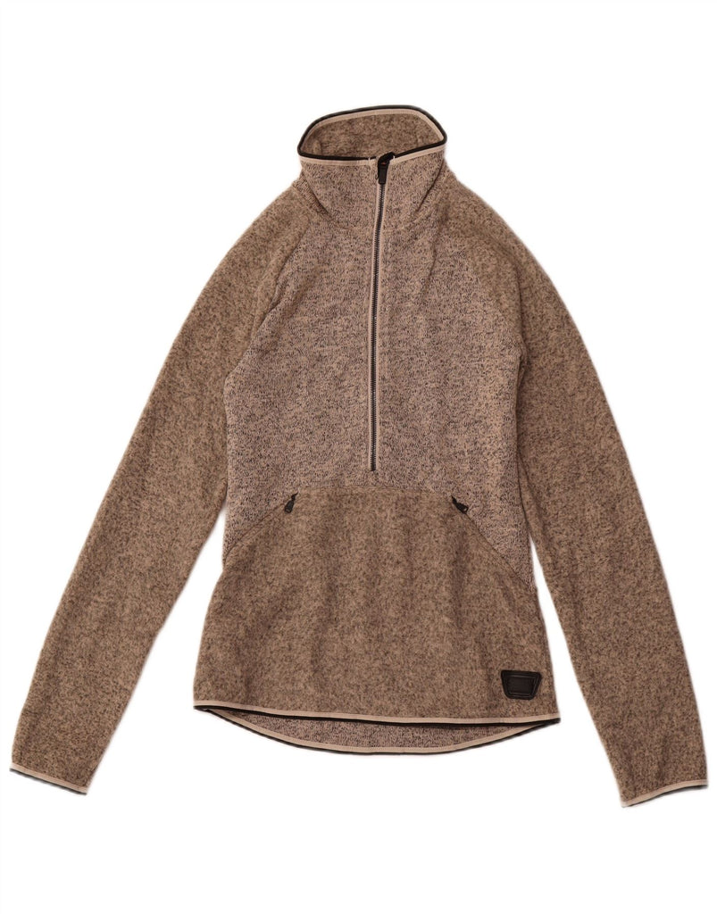 O'NEILL Womens Loose Fit Zip Neck Jumper Sweater UK 6 XS Beige Flecked