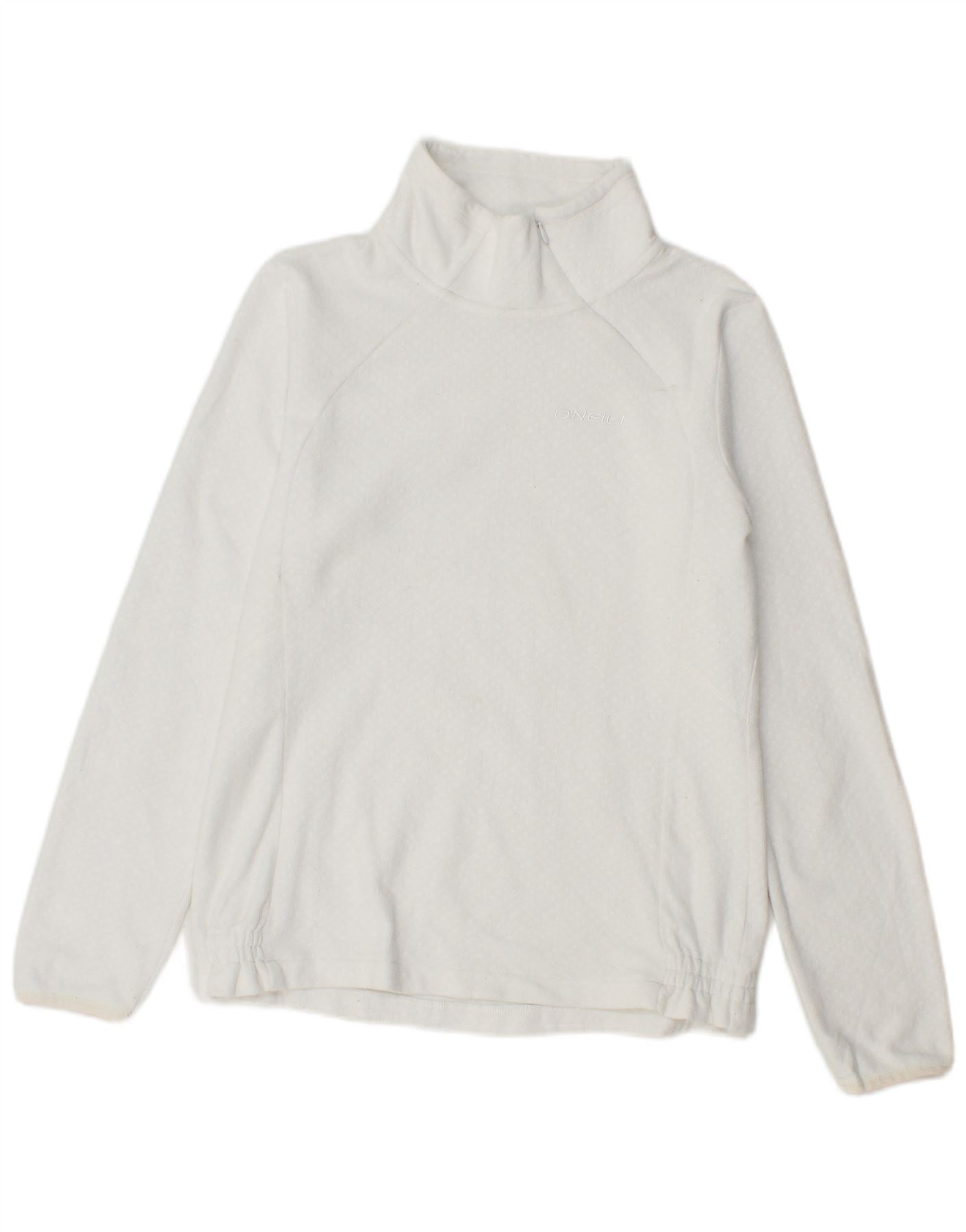 O'NEILL Womens Zip Neck Fleece Jumper UK 14 Medium White Polyester