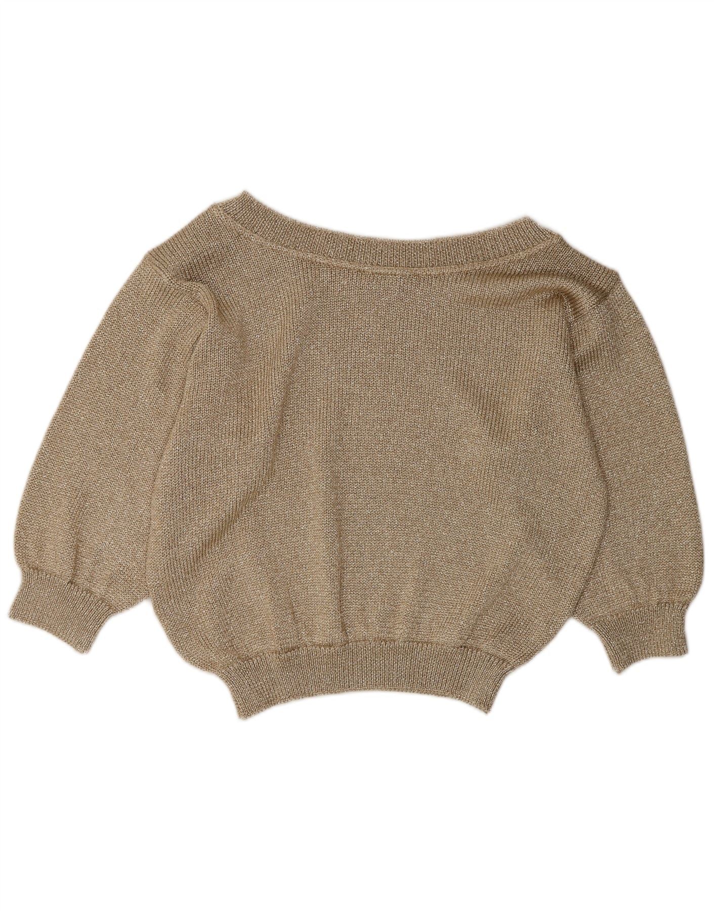 ONYX Womens Crop Boat Neck Jumper Sweater UK 14 Medium Gold Cupro