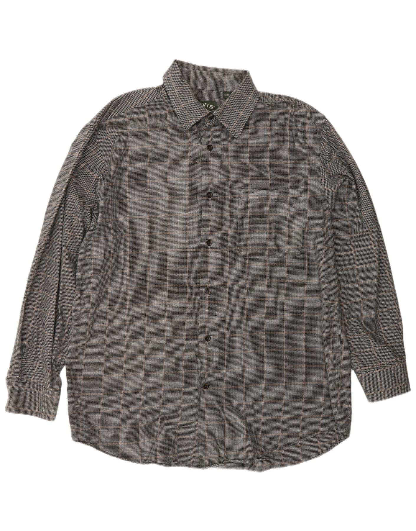 - AI Description: This Orvis mens shirt is crafted from a comfortable grey blended fabric, featuring 80 percent cotton and 20 percent wool. It showcases a classic checked pattern with subtle orange lines. The collared neckline and full button-up front offer a timeless appeal. Long sleeves with buttoned cuffs complete the smart look. A regular fit ensures comfort and versatility for everyday wear. It includes practical chest pockets.