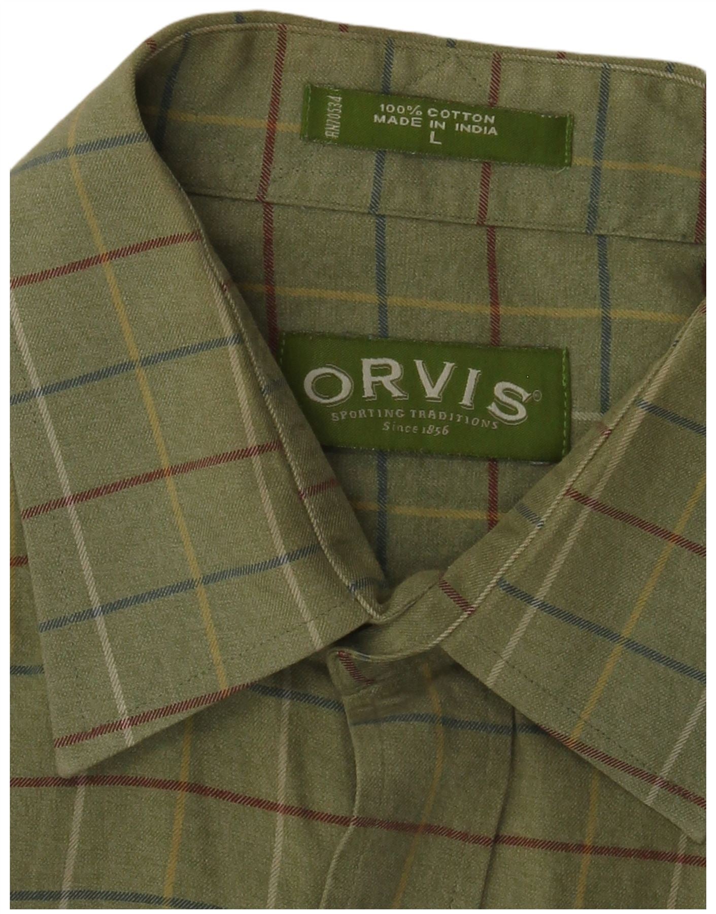 - AI Description: This Orvis mens shirt is crafted from 100 percent woven cotton, offering a comfortable feel. It features a classic green check pattern with subtle multicoloured lines. The collared neckline and full button-up front provide a timeless look. Long sleeves finish with buttoned cuffs. A single chest pocket adds practical detail. The regular fit ensures comfortable wear for everyday style.