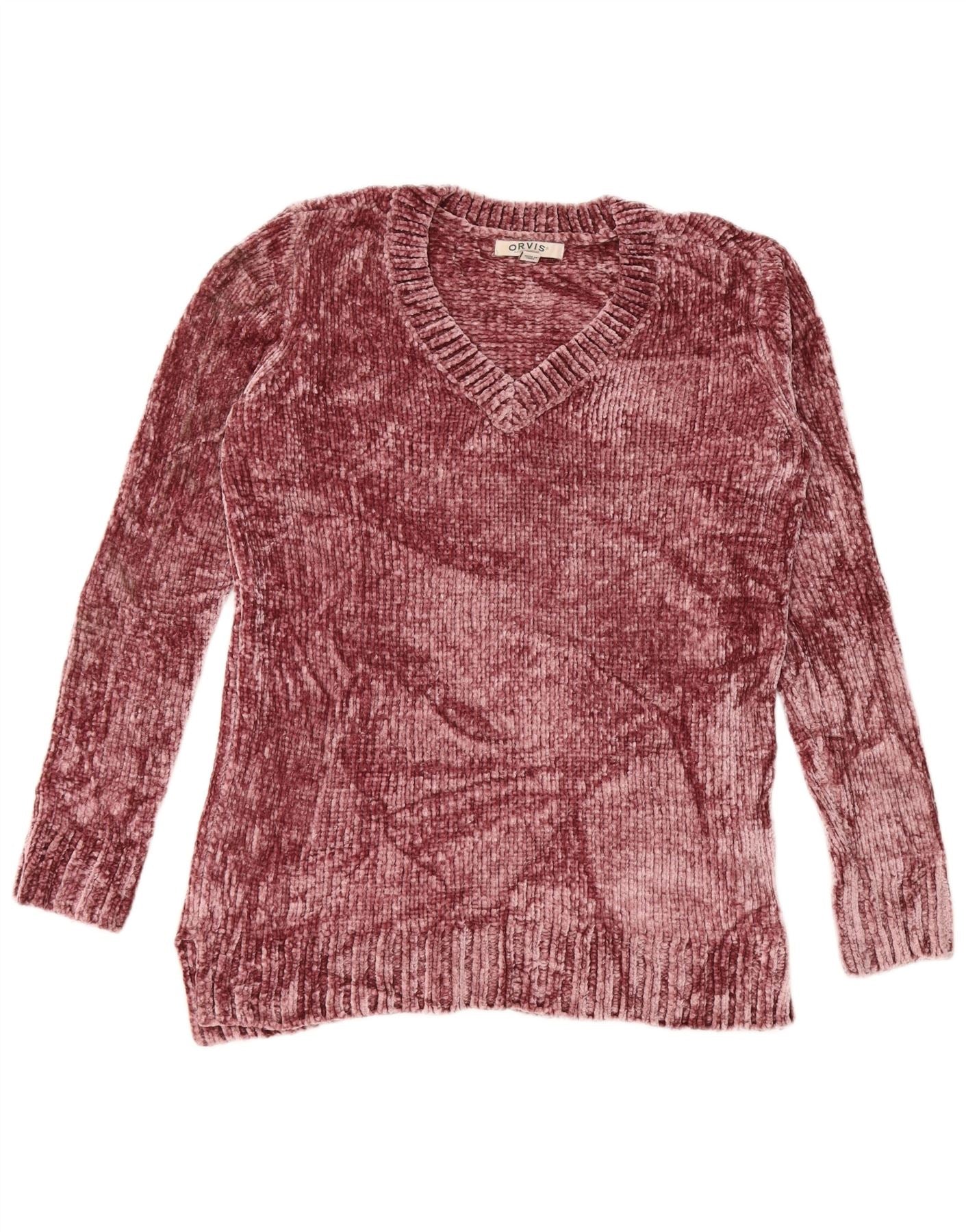 ORVIS Womens V-Neck Jumper Sweater UK 14 Medium Maroon Polyester