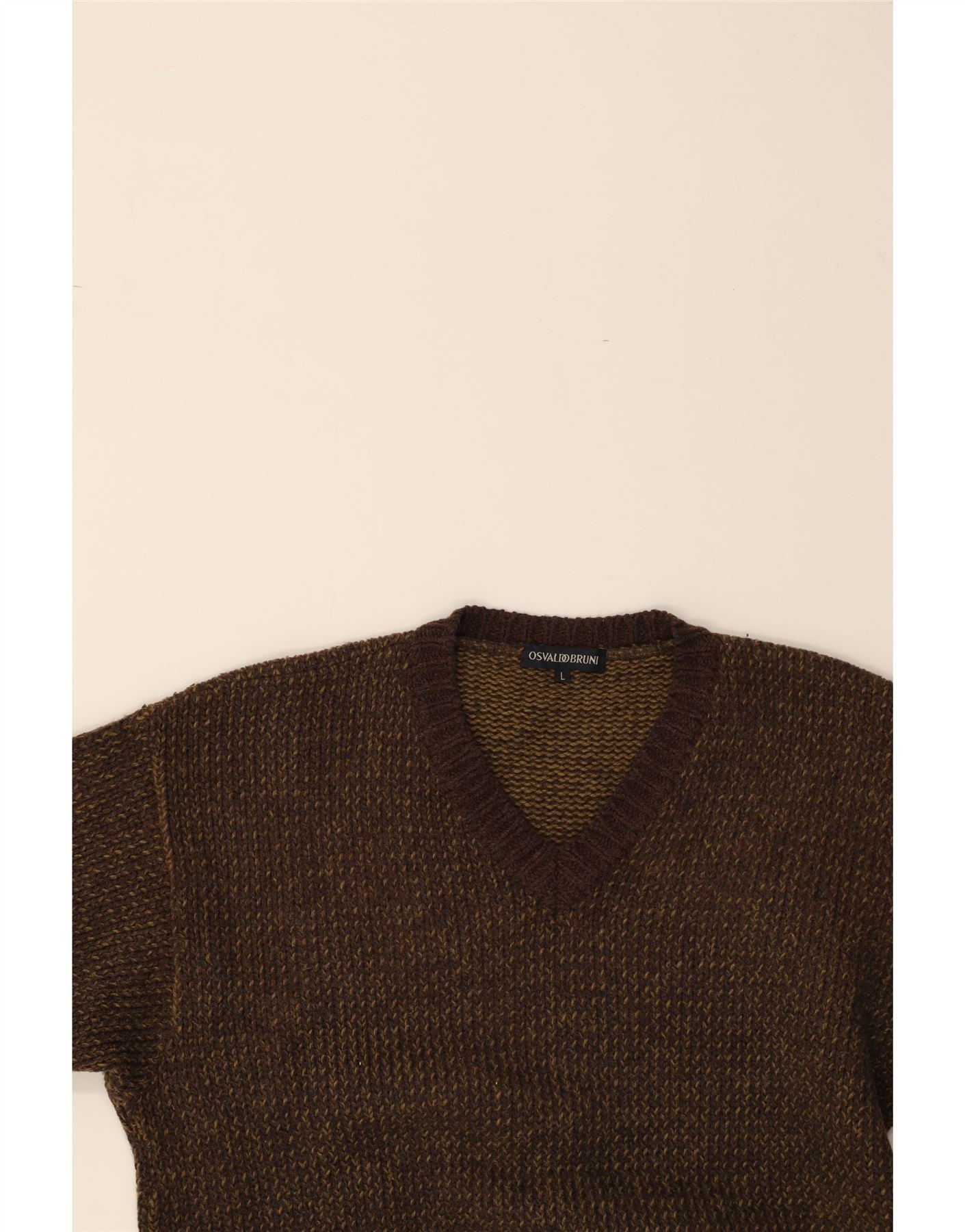 OSVALDO BRUNI Mens V-Neck Jumper Sweater Large Brown