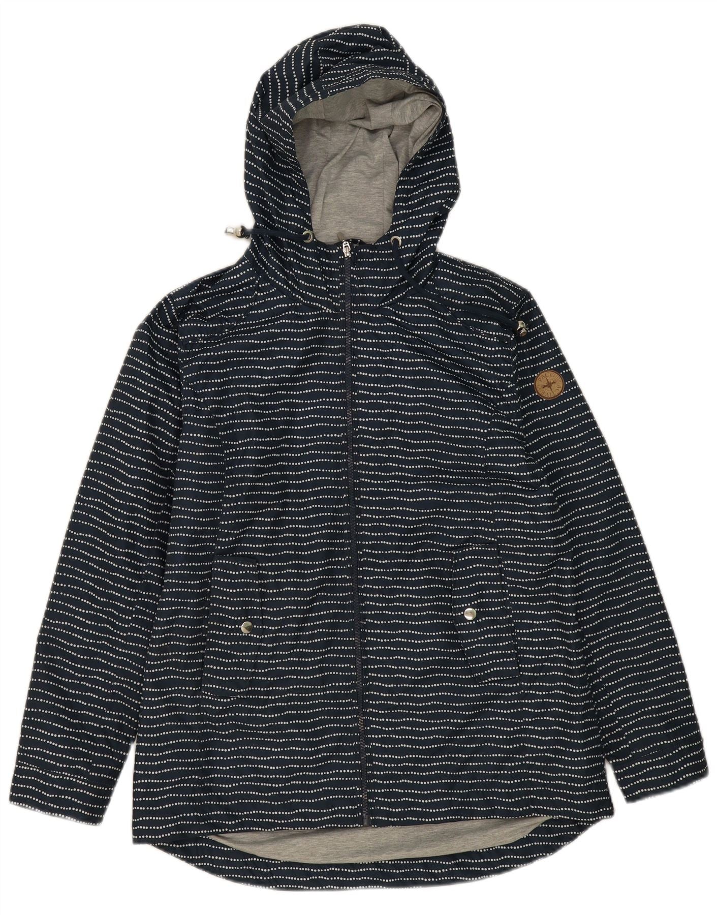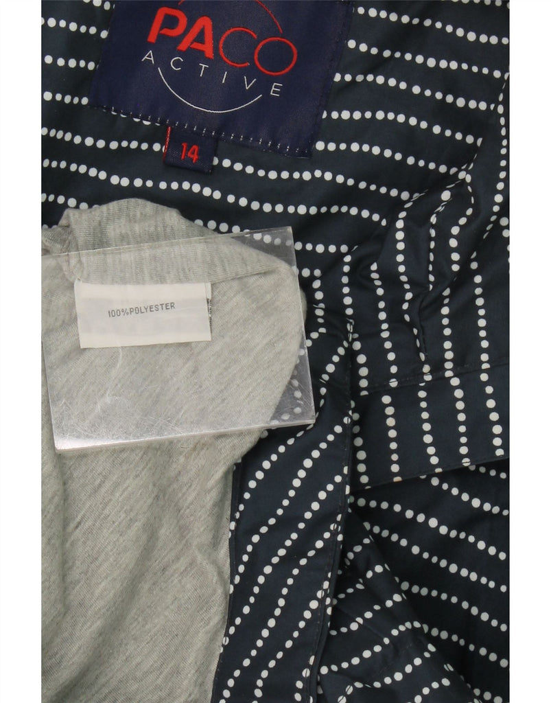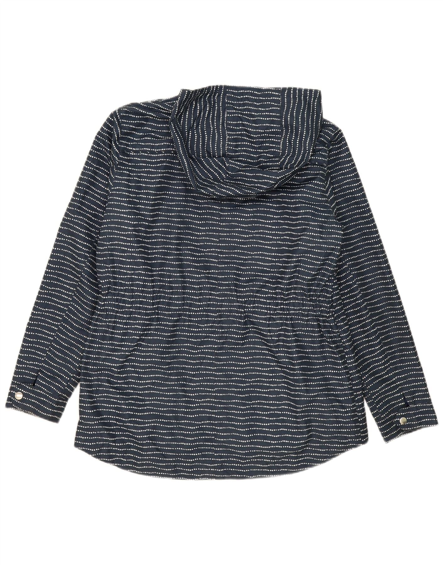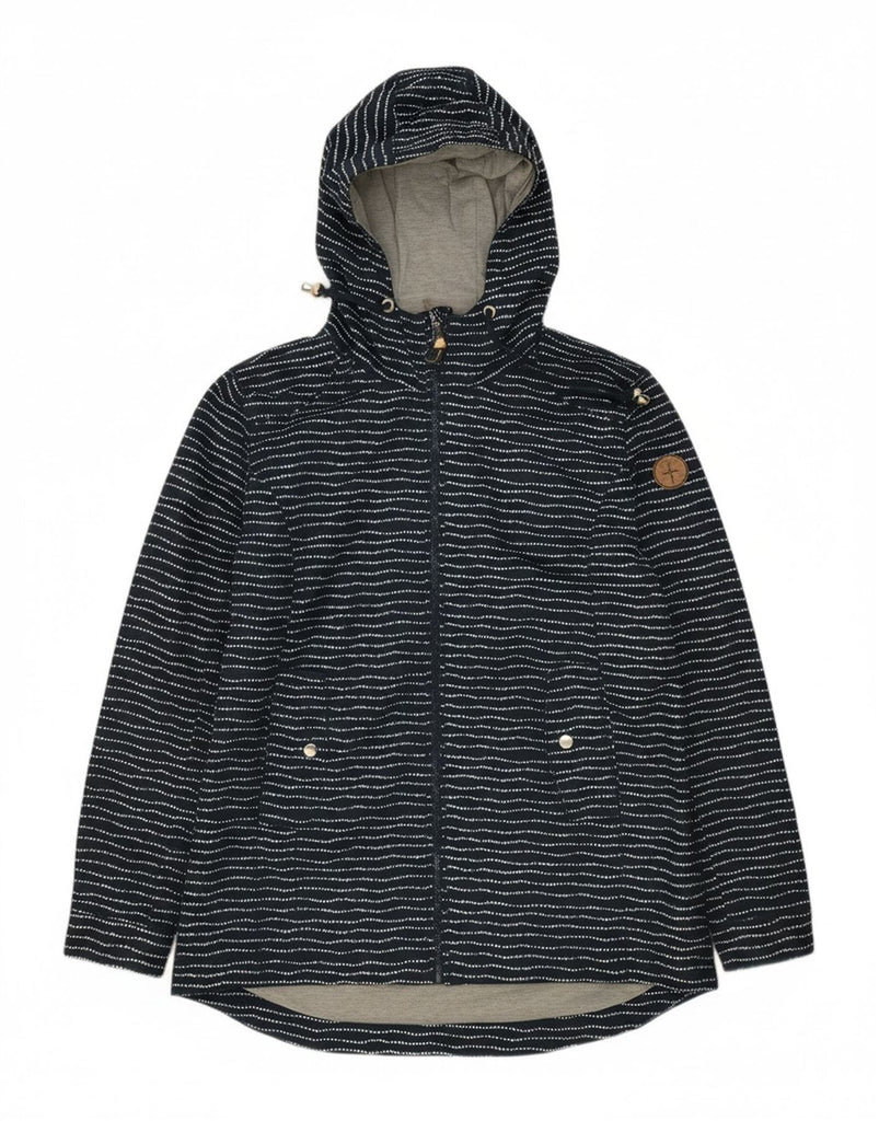 PACO Womens Hooded Rain Jacket UK 14 Large Navy Blue Striped Polyester