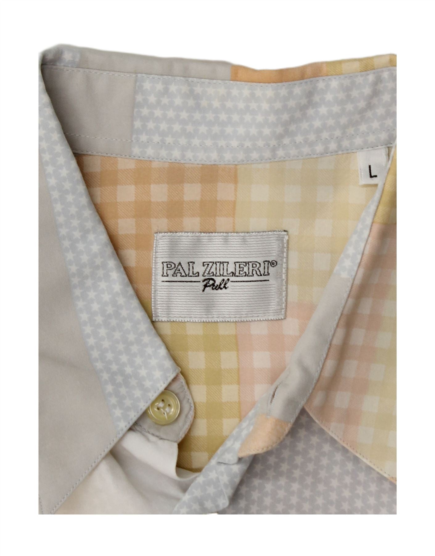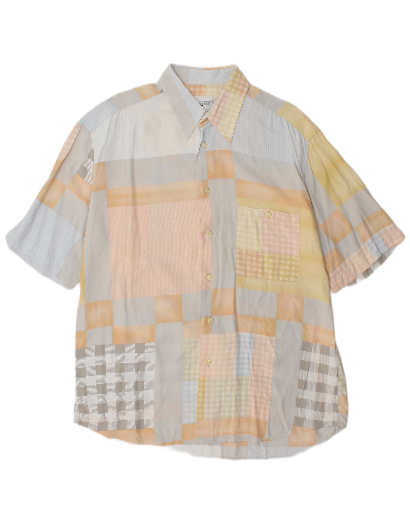 PAL ZILERI Mens Short Sleeve Shirt Large Multicoloured Patchwork Viscose