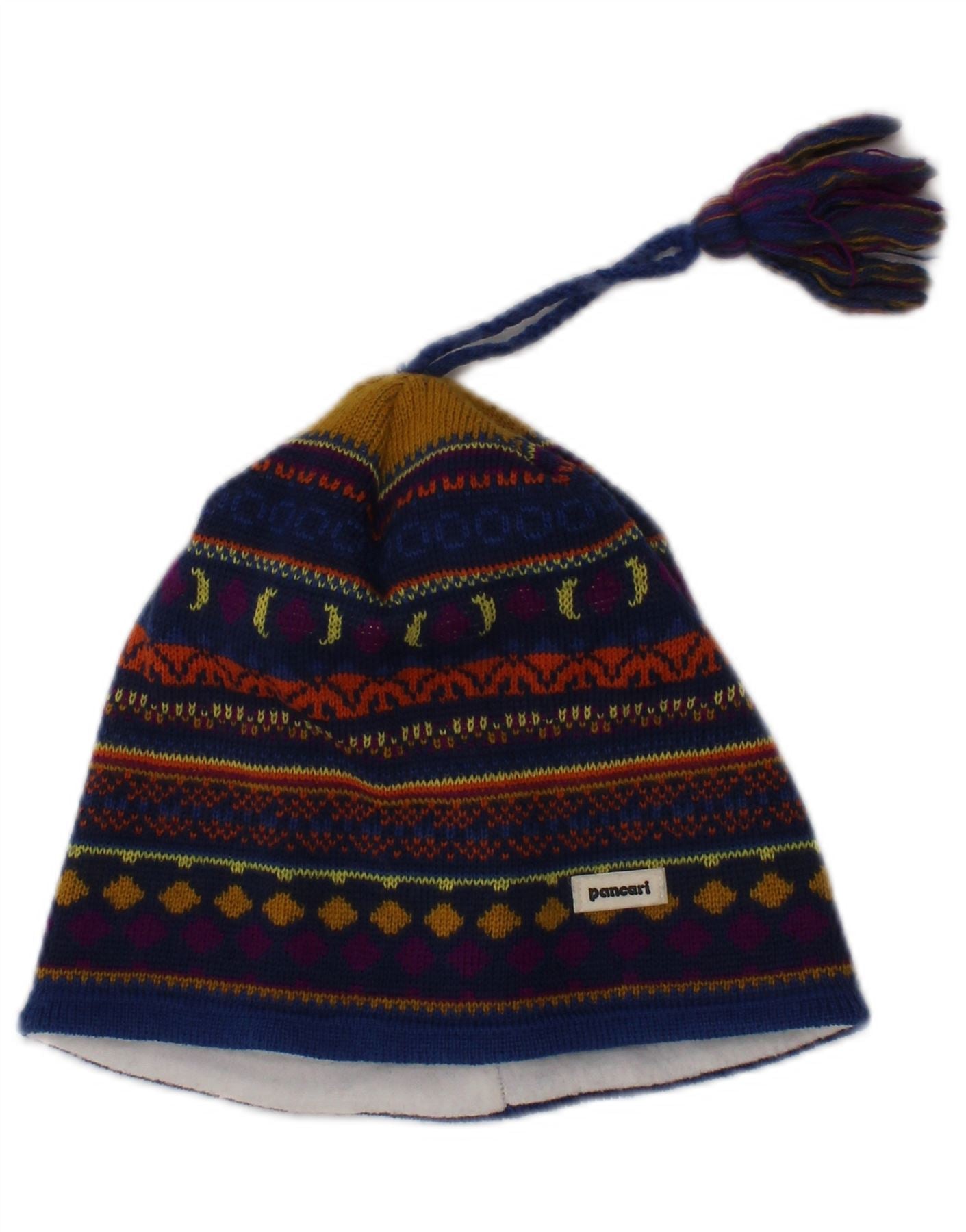 PANCARI Womens Knit Beanie Hat One Size Multicoloured Geometric Bohemian