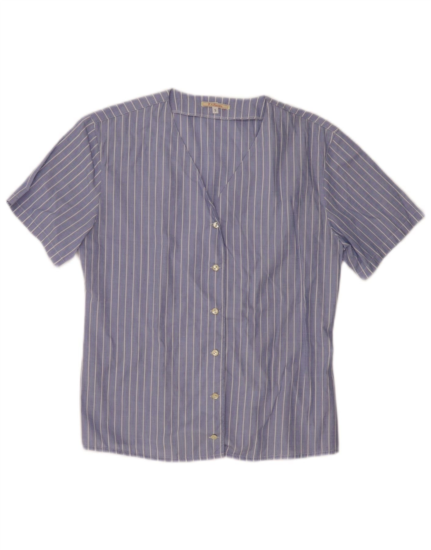 PAOLO PECORA Womens Short Sleeve Shirt UK 10 Small Blue Pinstripe Cotton