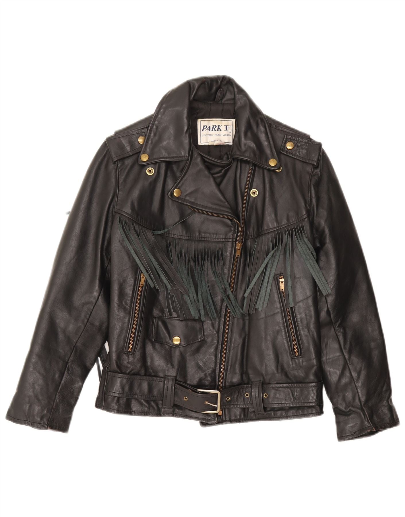 PARK V Girls Leather Biker Jacket 9-10 Years Black Leather