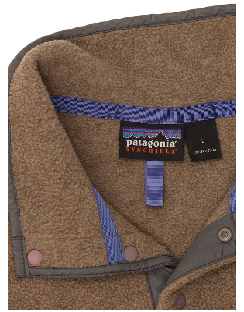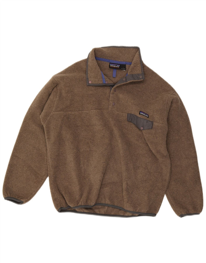 PATAGONIA Mens Button Neck Fleece Jumper Large Brown Polyester