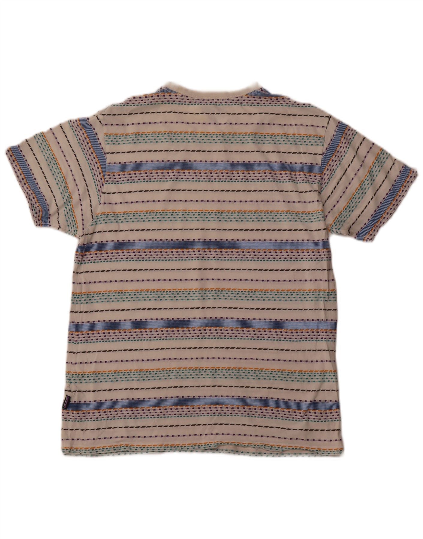 Patagonia Mens T-Shirt Top Medium Off White Striped Cotton