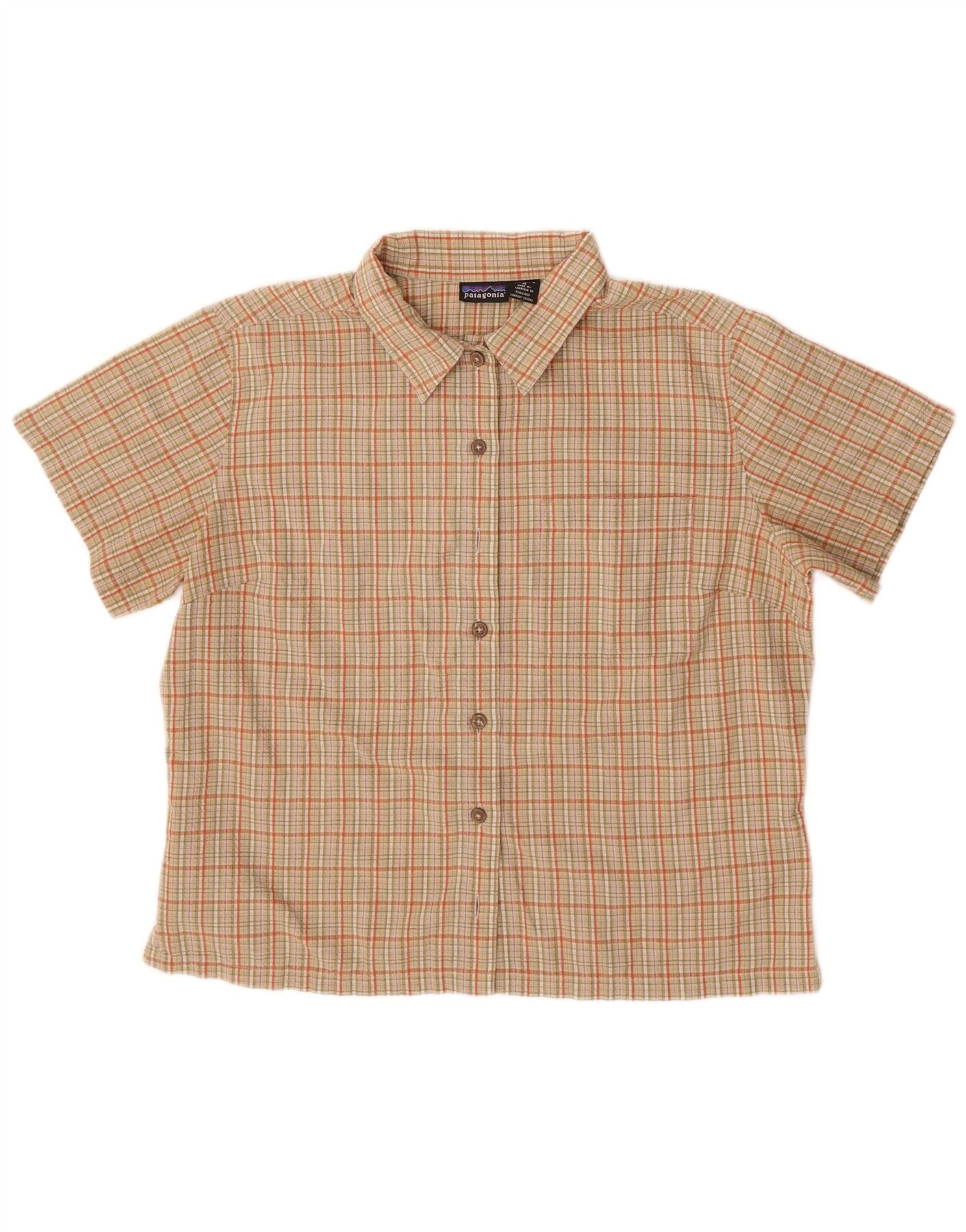 PATAGONIA Womens Short Sleeve Shirt UK 14 Medium Beige Check