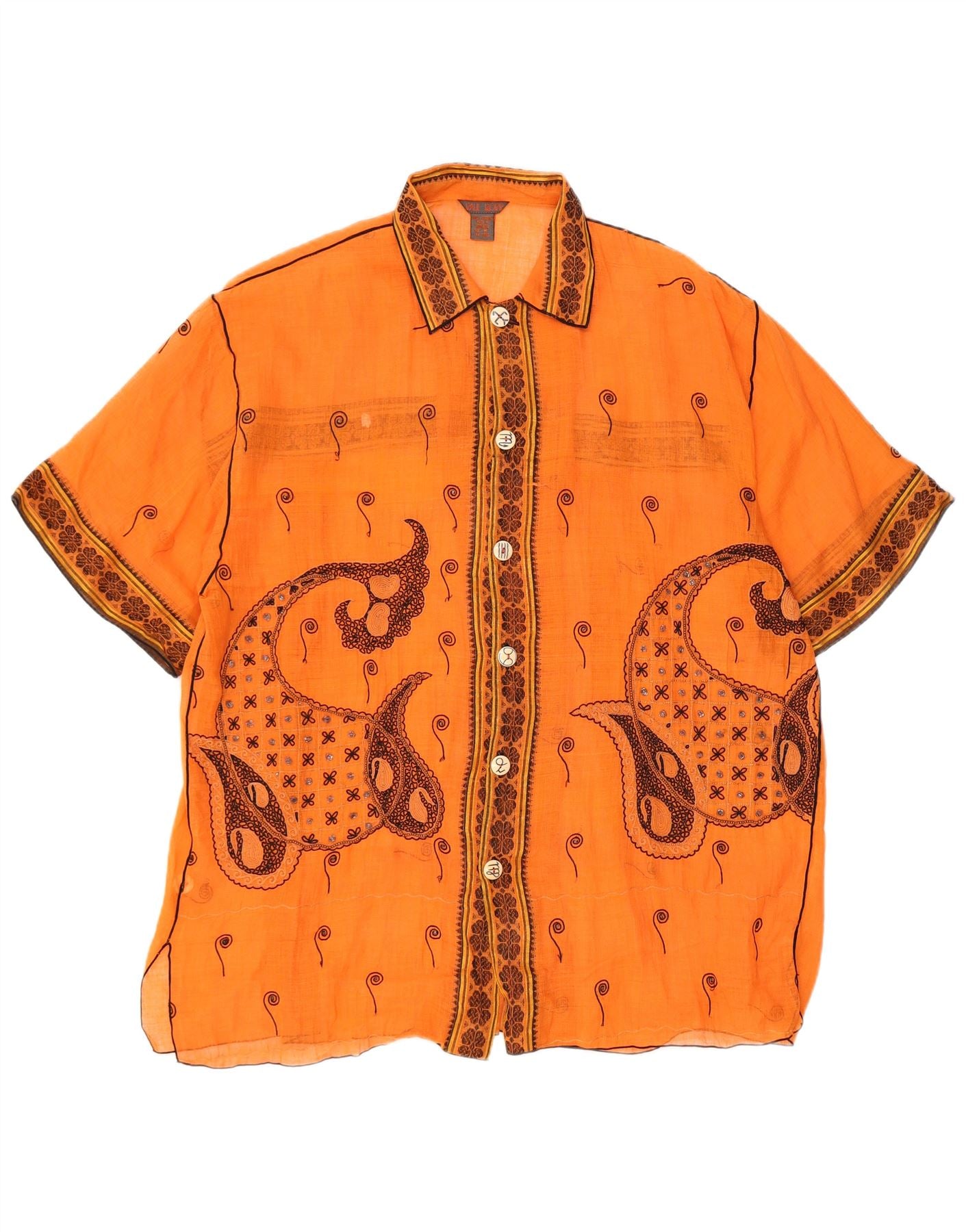 Home > Women's > Depop Clothing > PAUL ROPP Womens See Through Oversized Shirt UK 14 Medium Orange Paisley