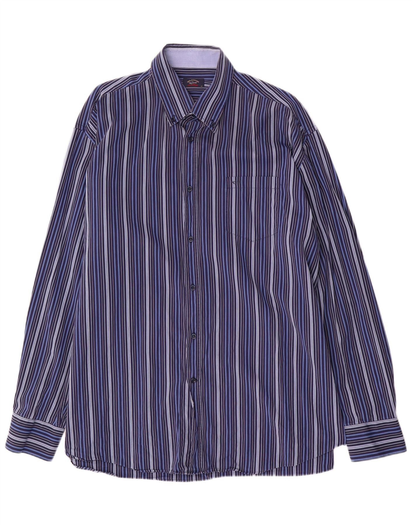 PAUL & SHARK Mens Shirt Size 45 XL Navy Blue Striped Cotton