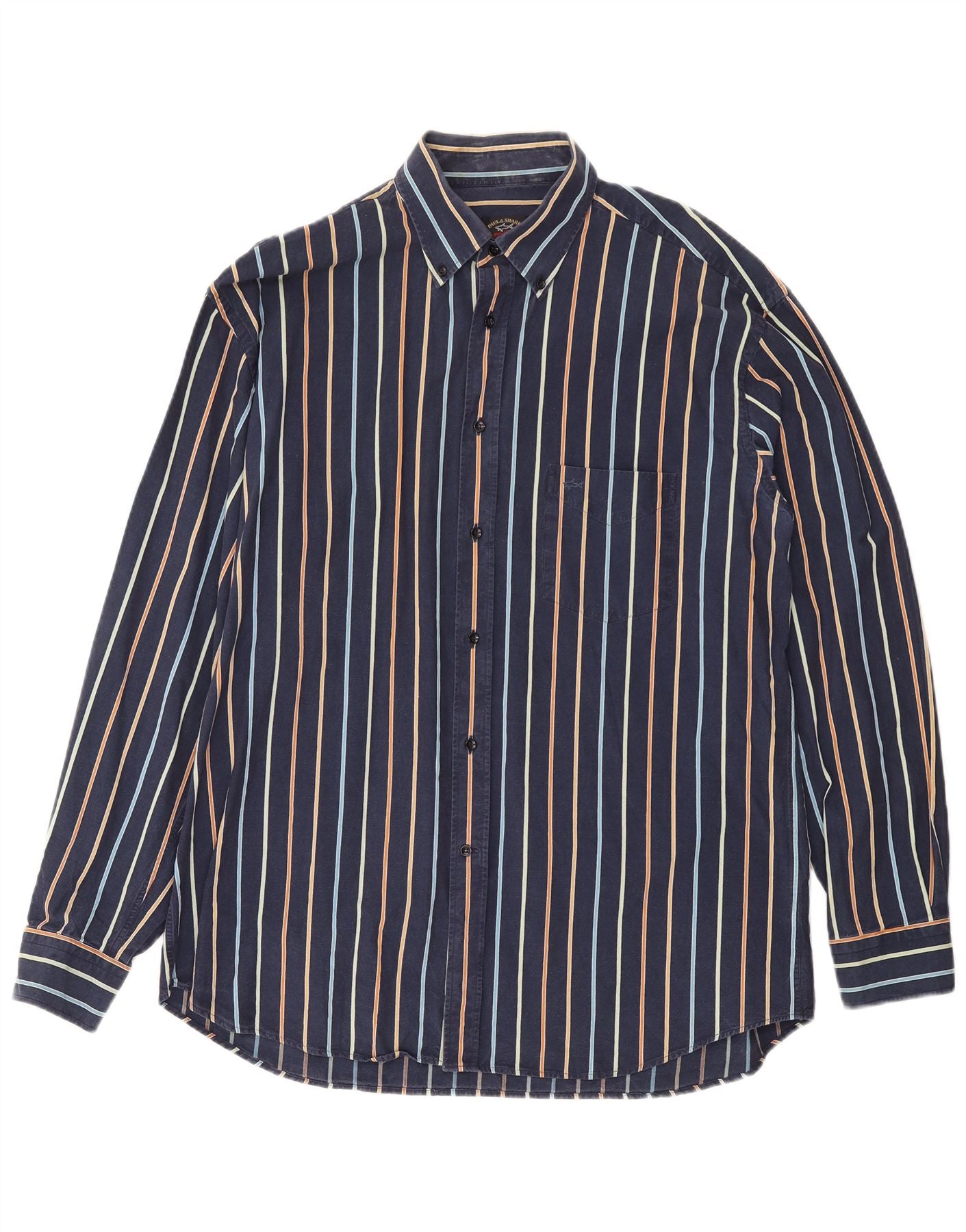 Paul & Shark Mens Yachting Shirt Size 43 Large Navy Blue Striped Cotton