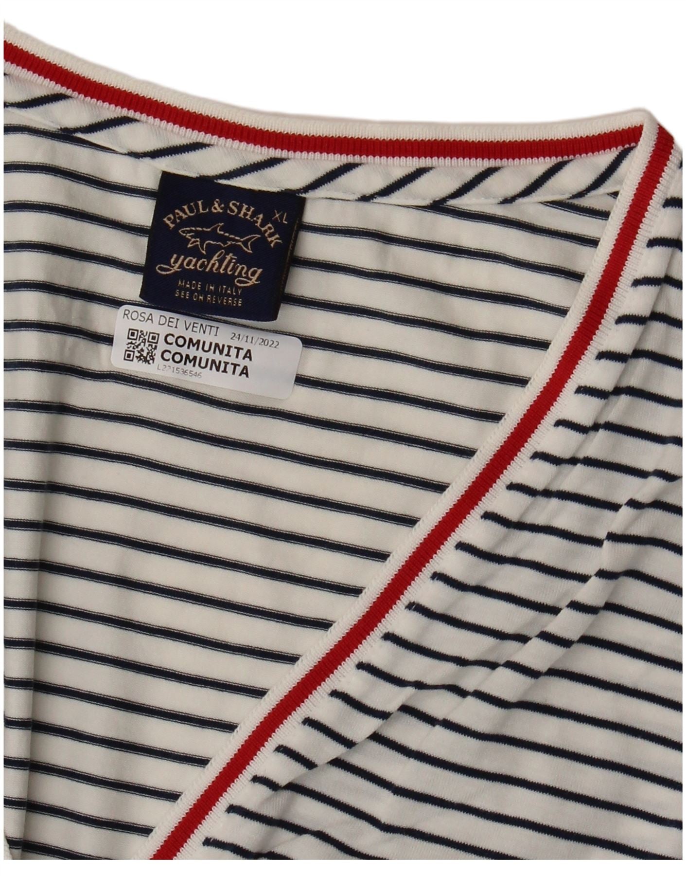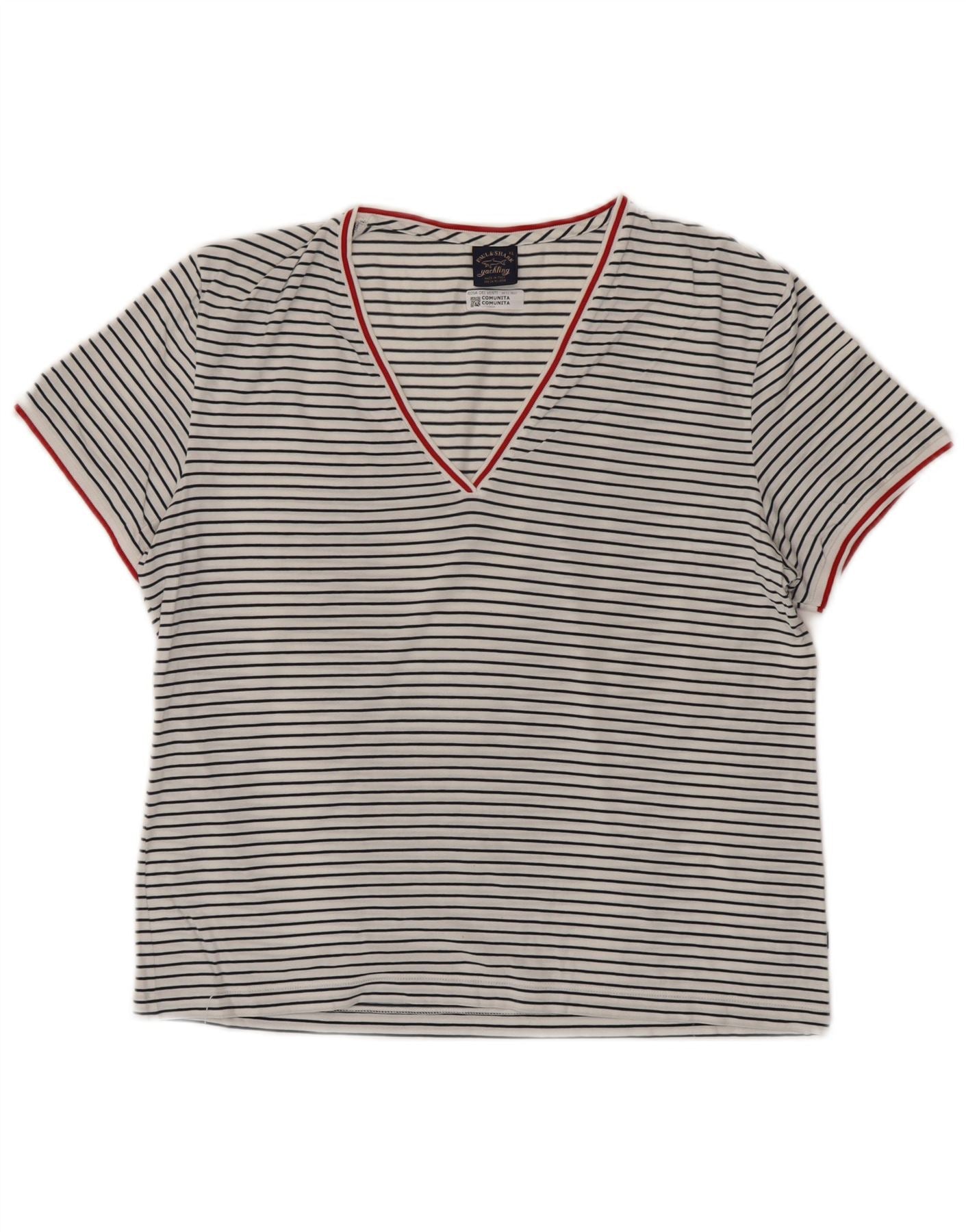 PAUL & SHARK Womens T-Shirt Top UK 18 XL White Striped Cotton