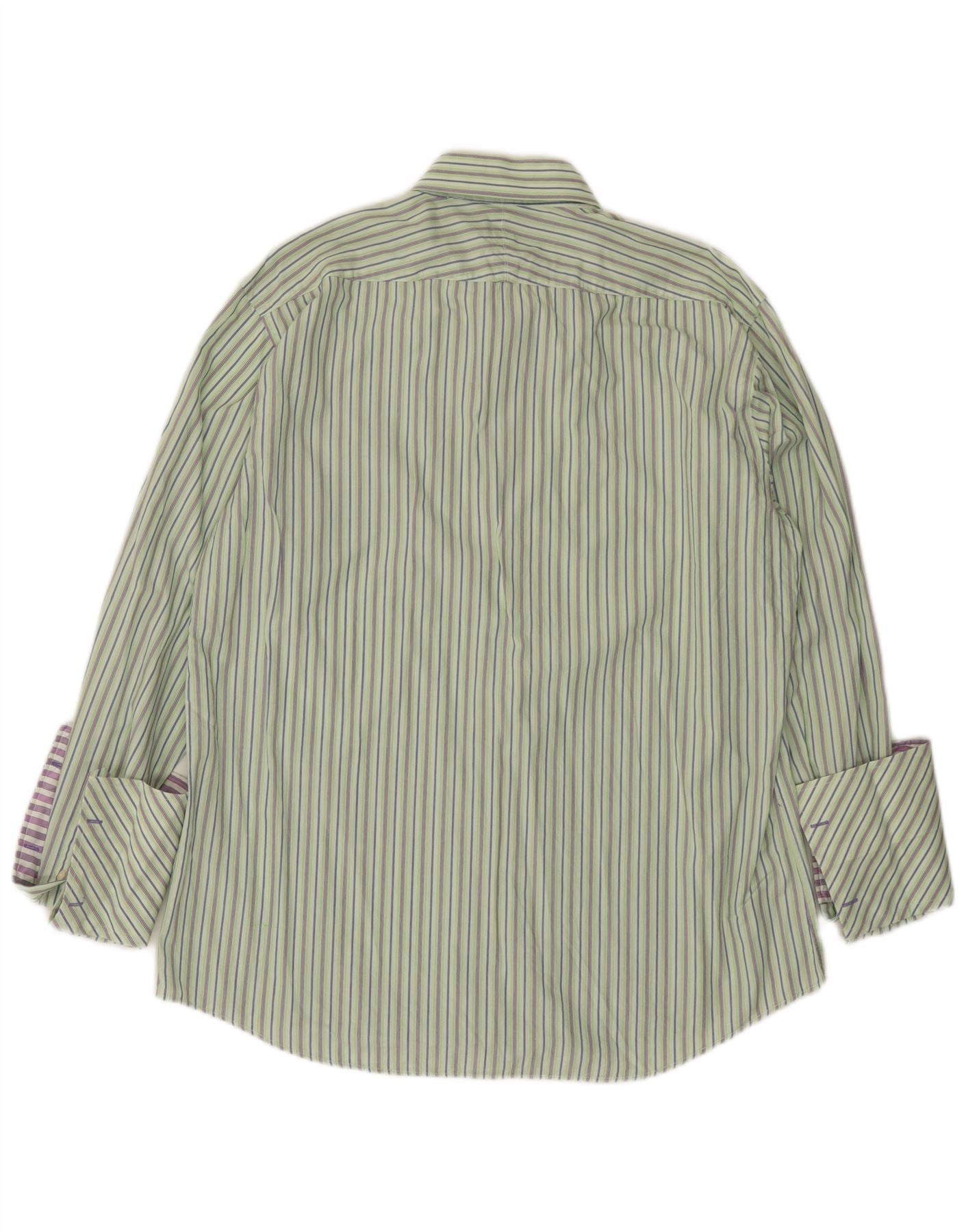 Paul Smith Mens Formal Shirt Size 45 17 1/2 XL Green Striped Cotton