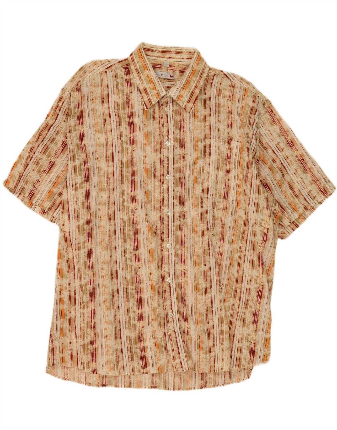 PAUL SMITH Mens Short Sleeve Shirt 2XL Beige Striped