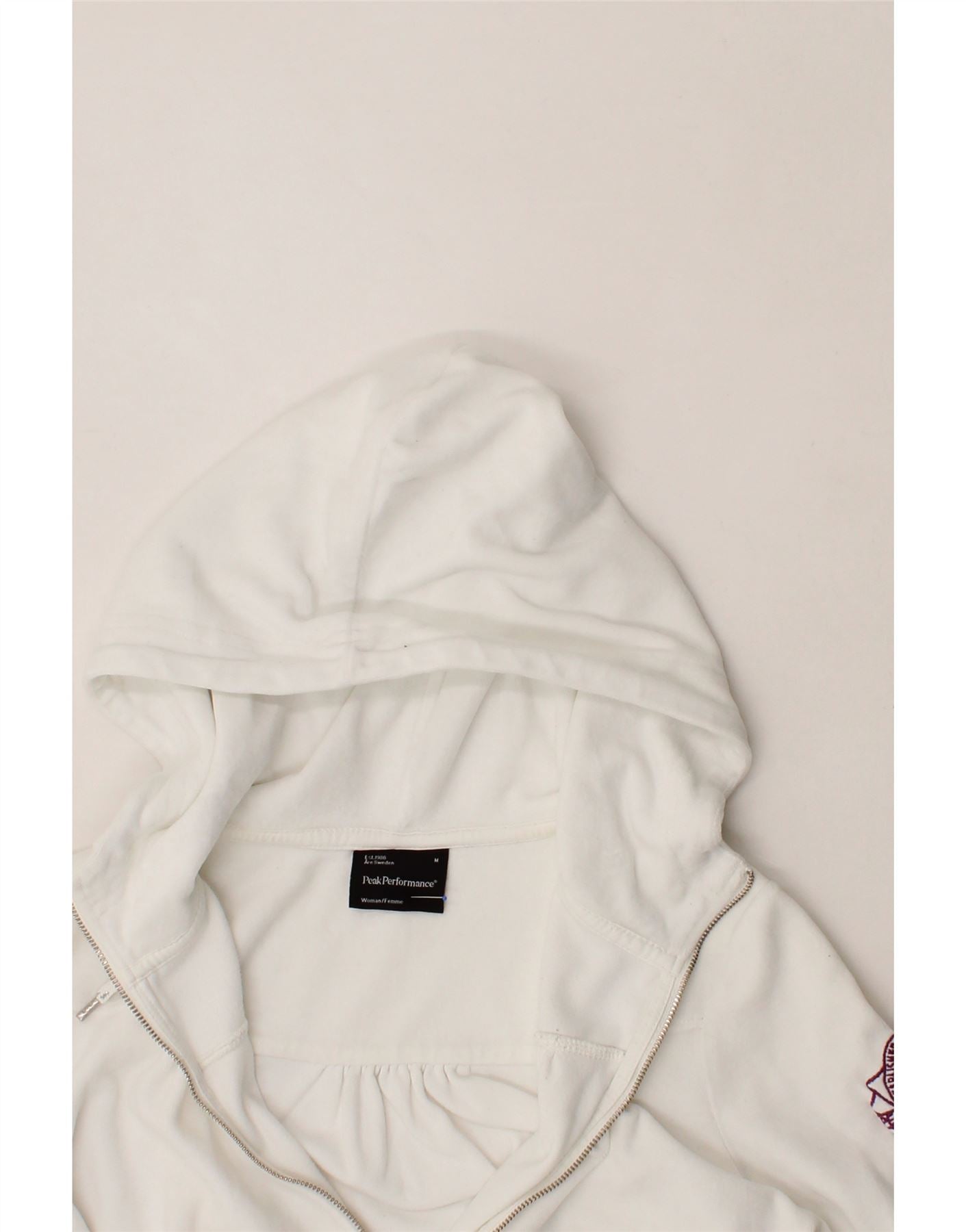 PEAK PERFORMANCE Womens Zip Hoodie Sweater UK 14 Medium White Cotton