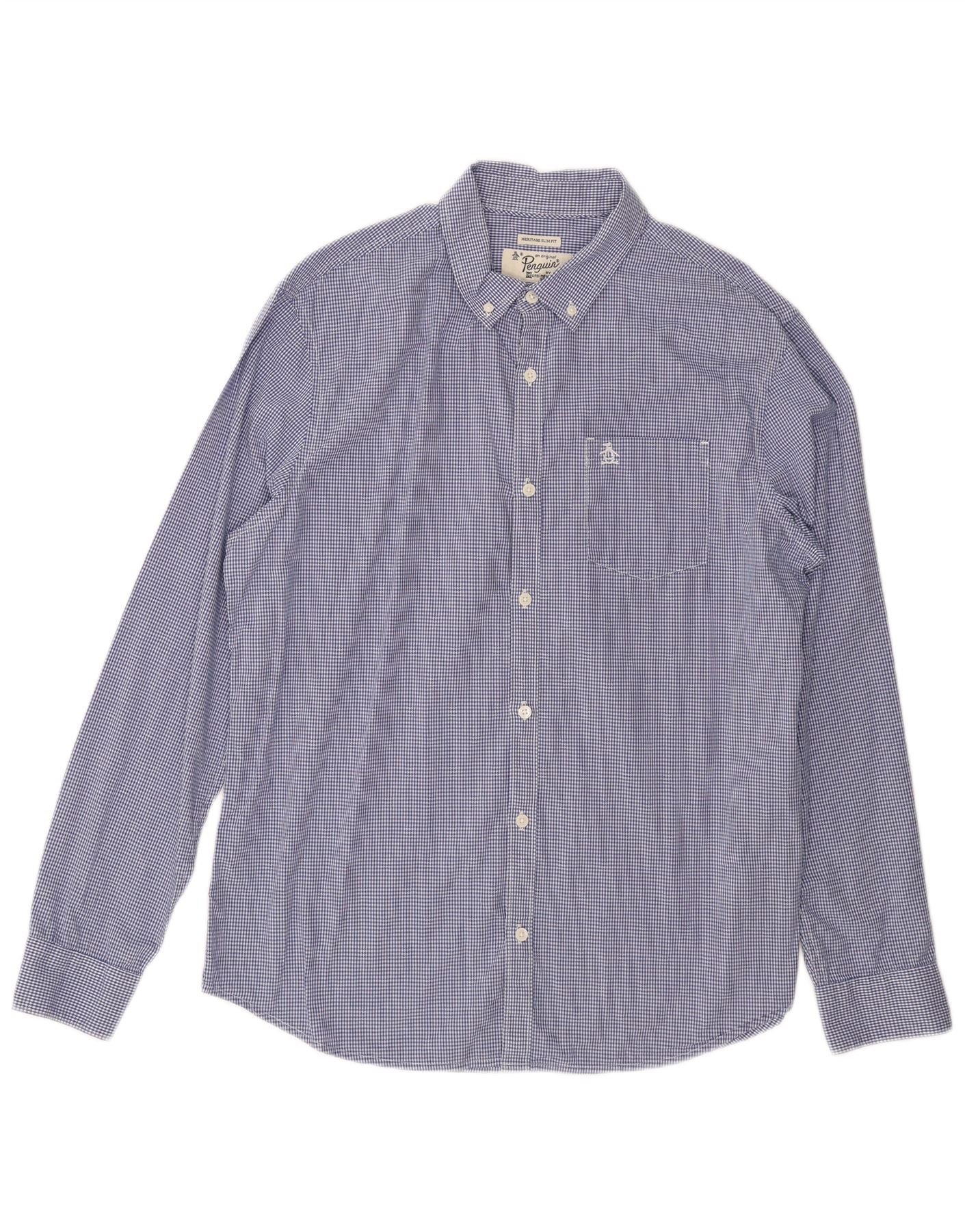 PENGUIN Mens Big & Tall Slim Fit Shirt XL Blue Gingham Cotton