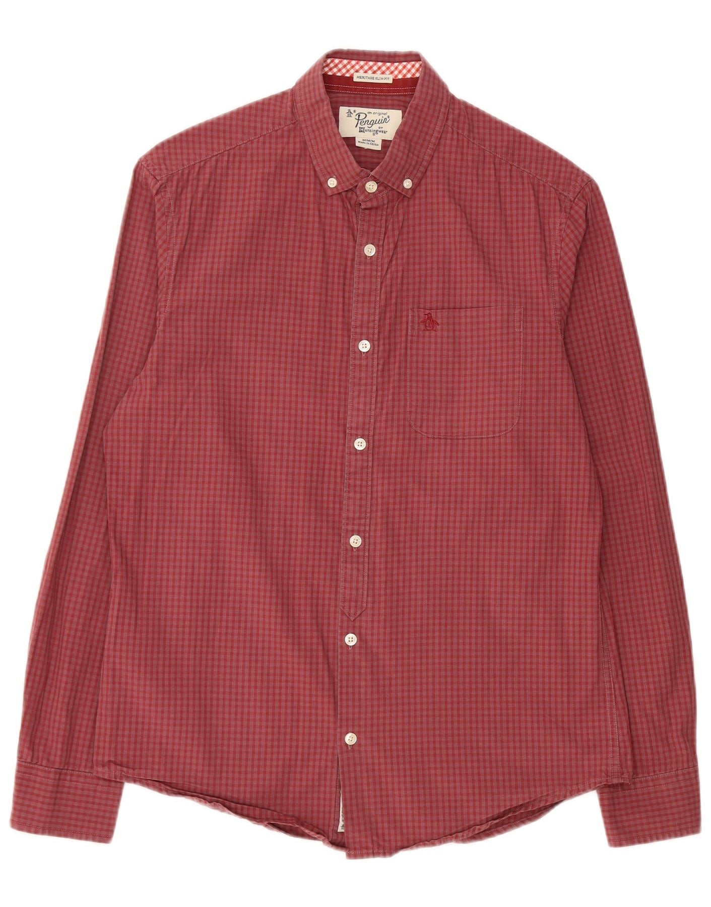 PENGUIN Mens Heritage Slim Fit Shirt Medium Red Gingham Cotton