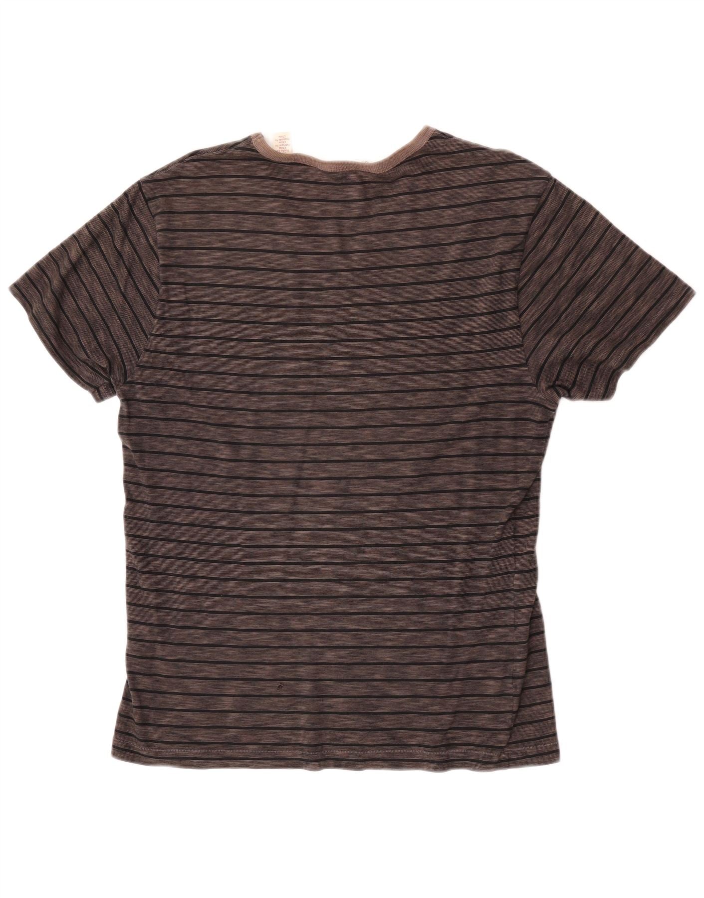 • AI Description: This Penguin mens T-shirt is crafted from lightweight brown jersey, featuring a classic striped pattern. The V-neckline offers a relaxed yet refined look. Short sleeves and a regular fit ensure comfortable wear. A subtle chest pocket with an embroidered logo adds practical detail and brand recognition. This pullover style is perfect for everyday casual elegance.