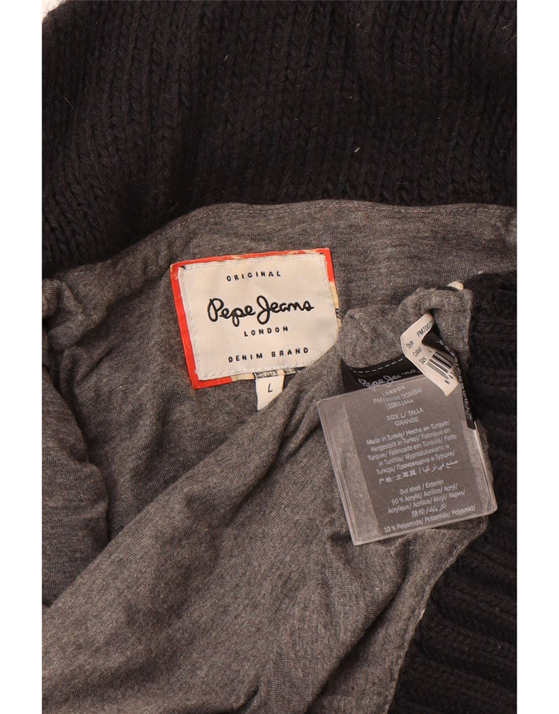 PEPE JEANS Mens Cardigan Sweater Large Black Fair Isle Acrylic
