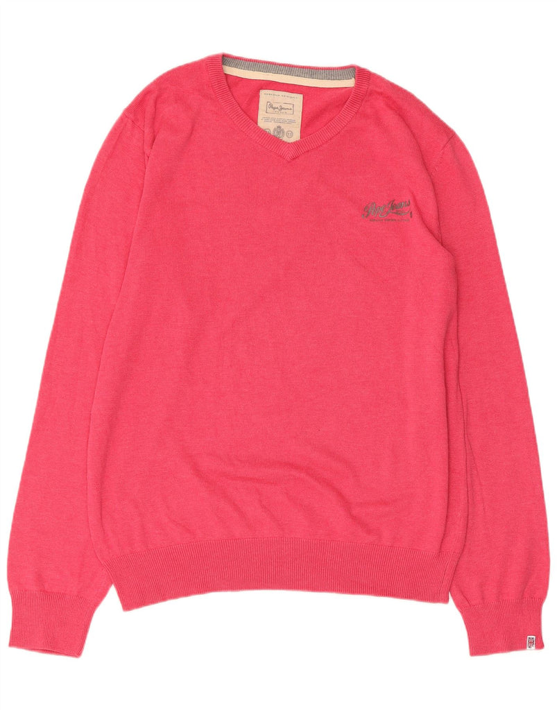 PEPE JEANS Womens V-Neck Jumper Sweater UK 18 XL Pink Cotton