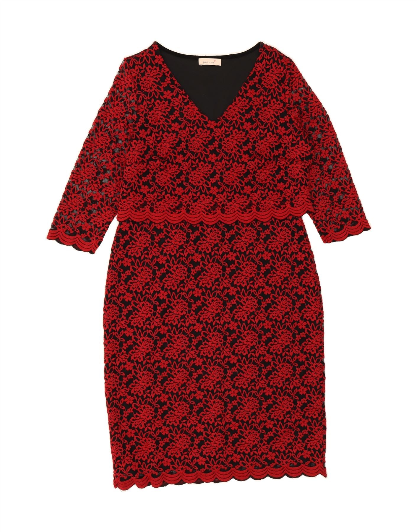PER UNA Womens 3/4 Sleeve Sheath Dress UK 18 XL Red Floral Polyamide