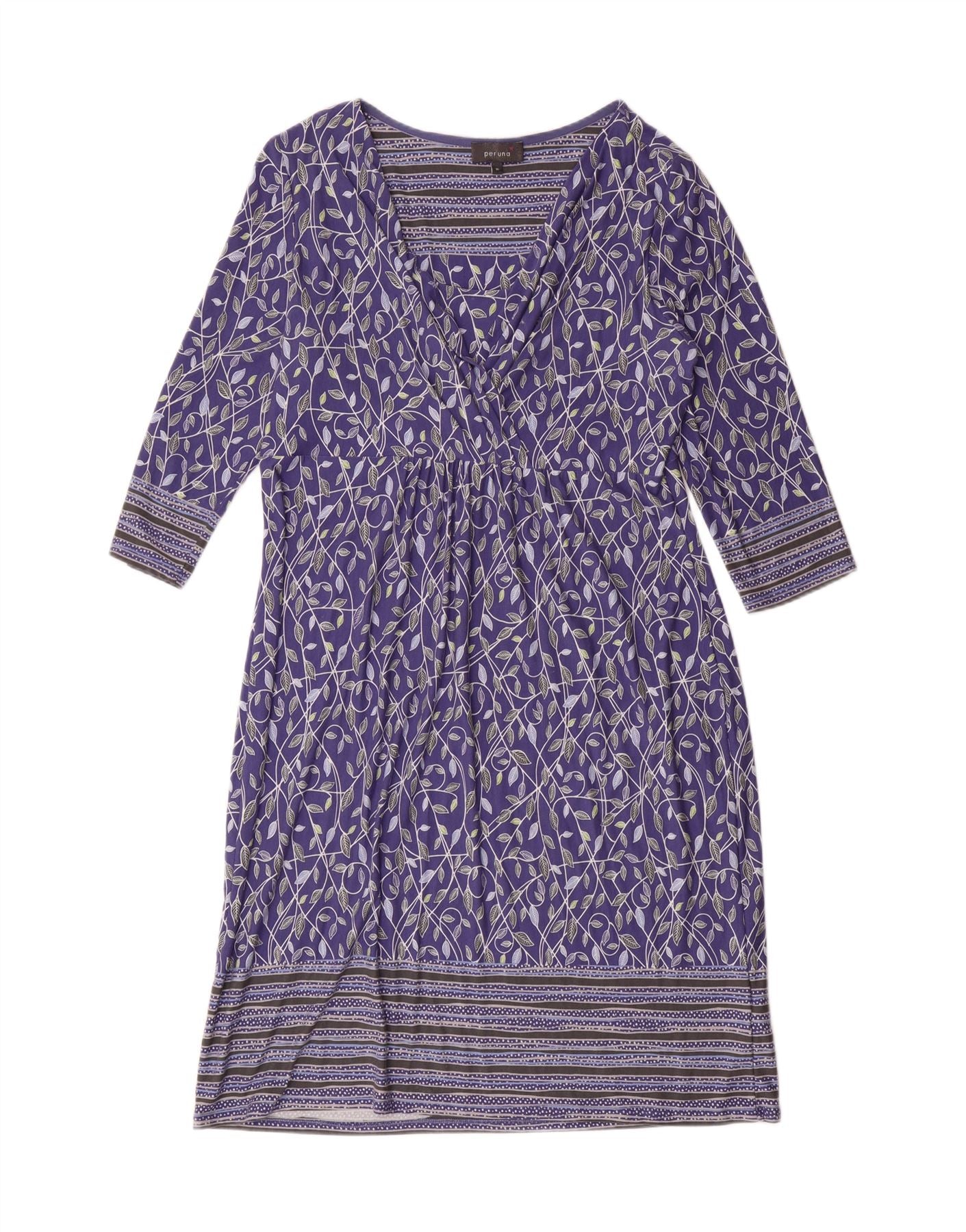 PER UNA Womens 3/4 Sleeve Shift Dress UK 16 Large Purple Floral Viscose