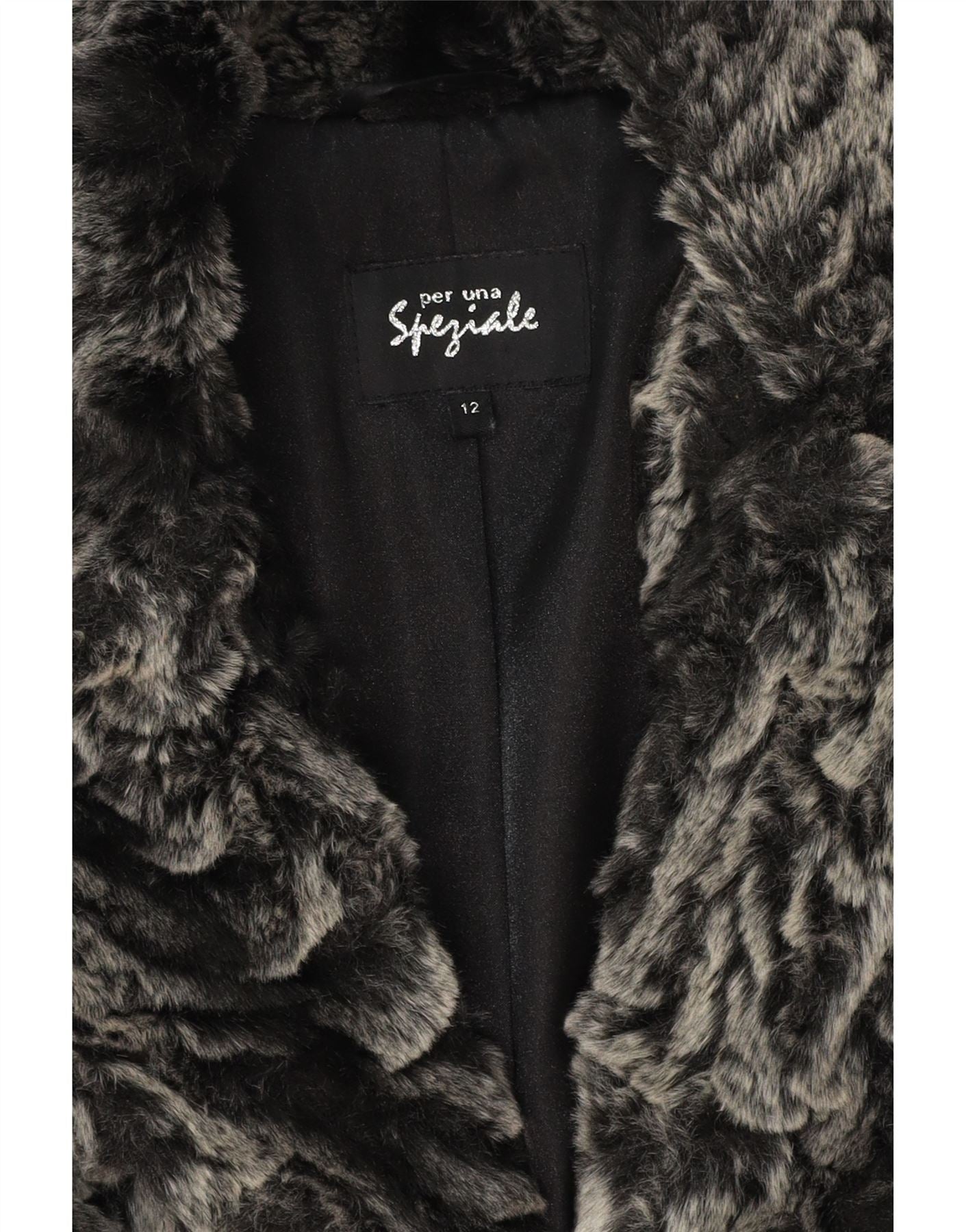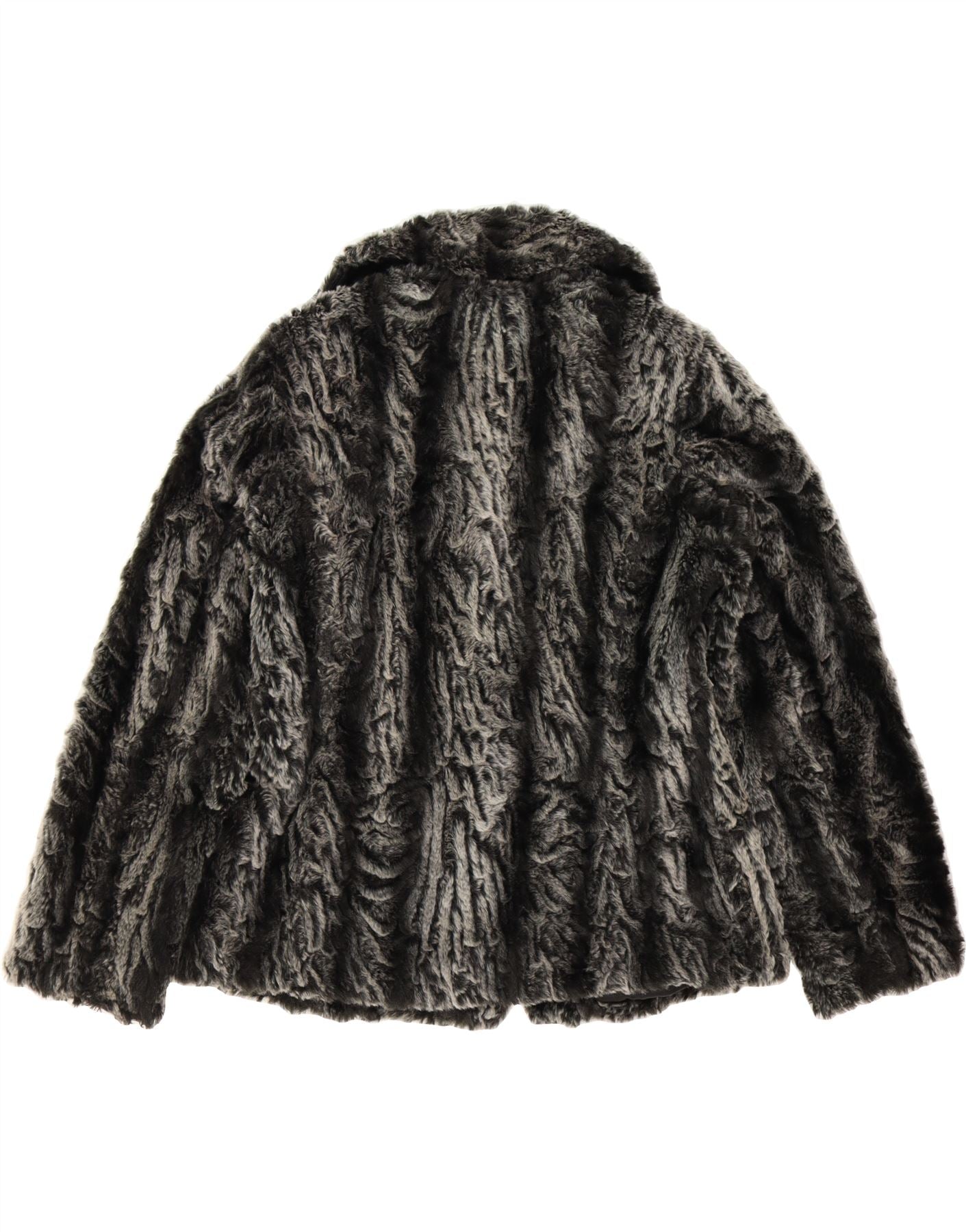 PER UNA Womens Faux Fur Jacket UK 12 Medium Grey Striped Acrylic