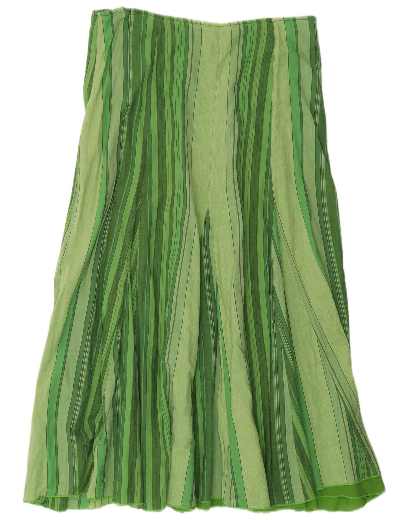 PER UNA Womens High Waist A-Line Skirt UK 14 Large W34 Green Striped