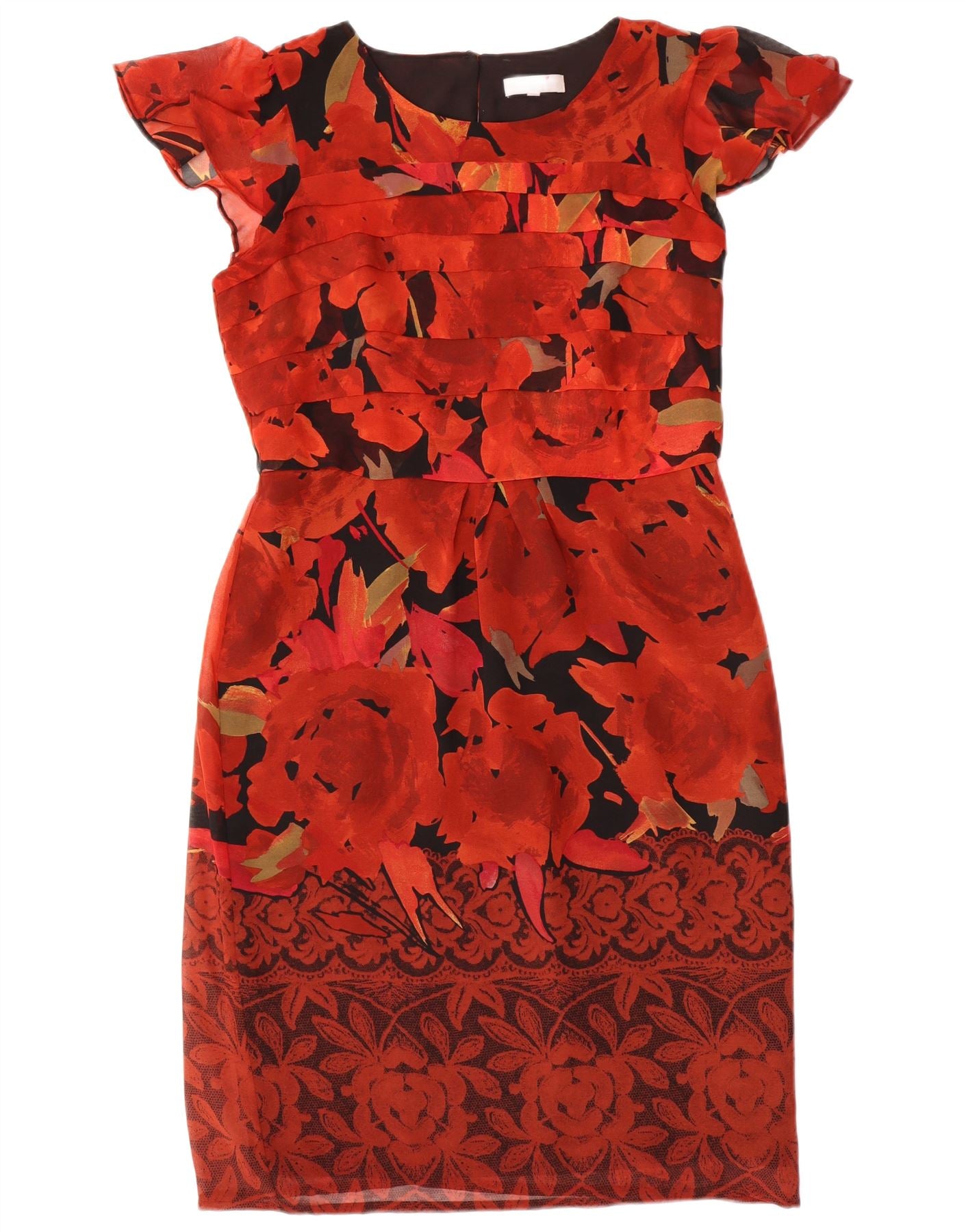 PER UNA Womens Sheath Dress UK 14 Large Red Floral Polyester