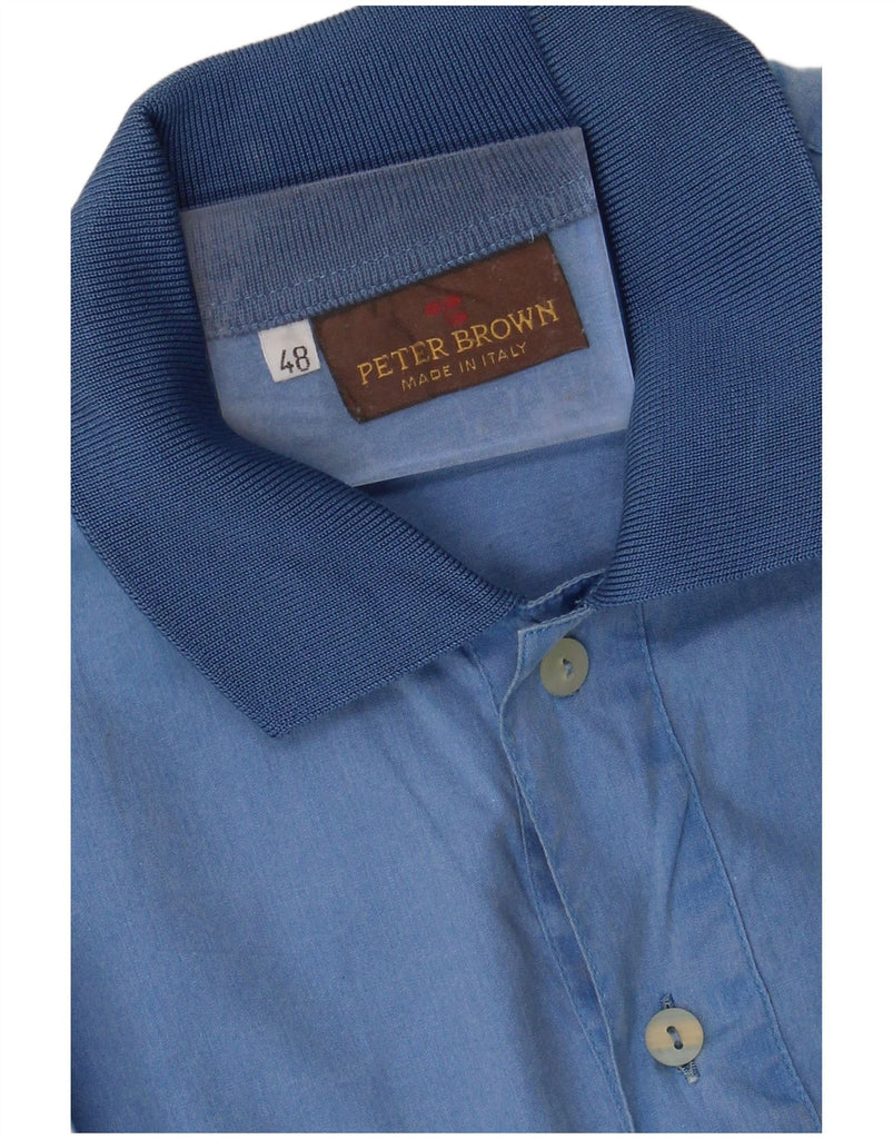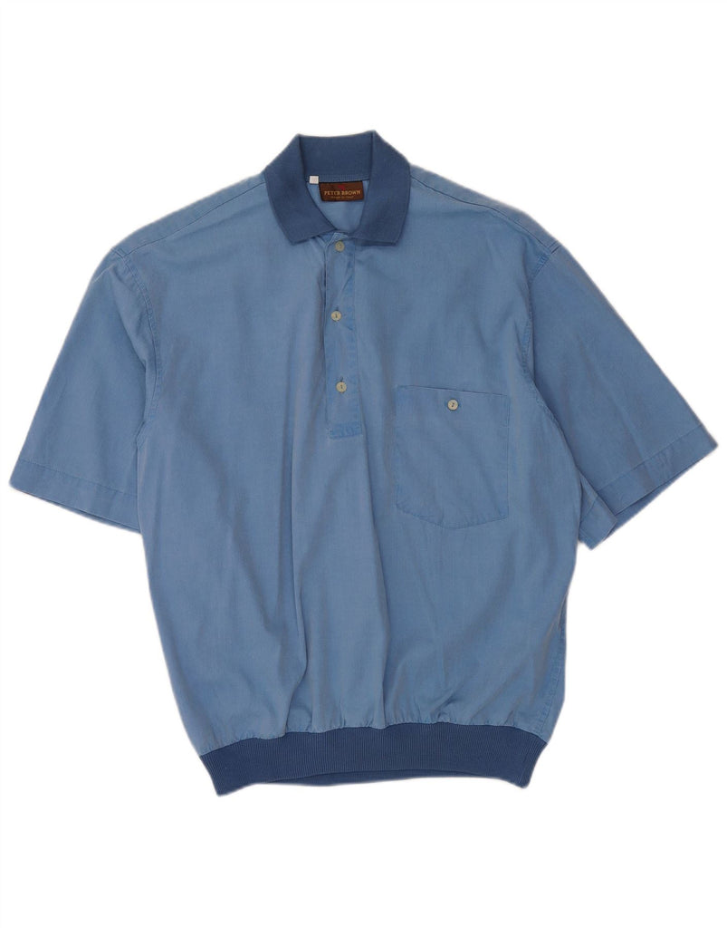 PETER BROWN Mens Short Sleeve Pullover Shirt Size 48 2XL Blue Cotton