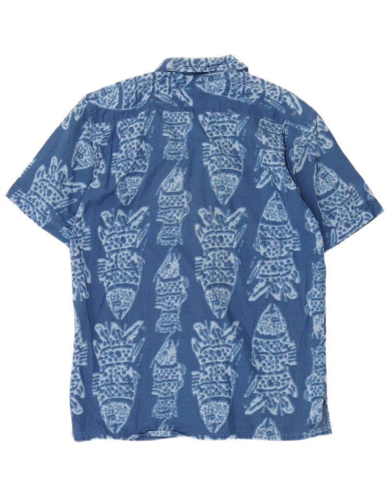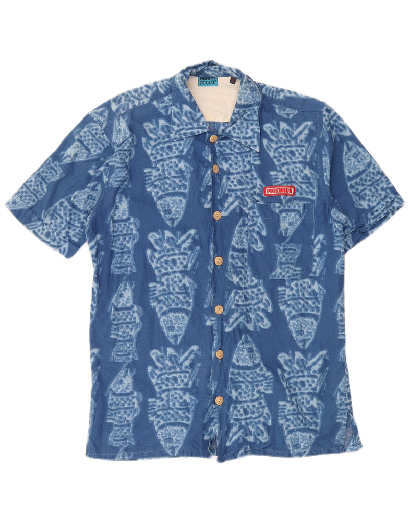 PICKWICK Mens Short Sleeve Shirt Medium Blue Animal Print Cotton