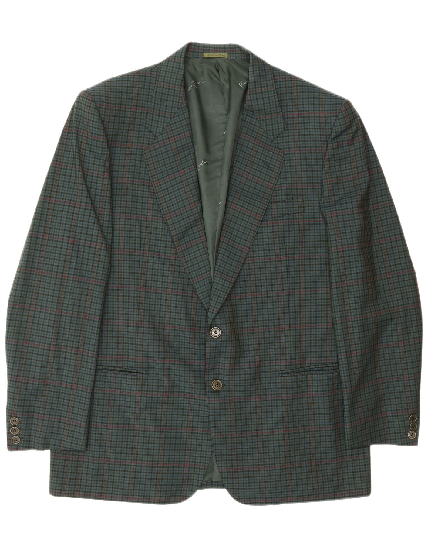 PIERRE CARDIN Mens 2 Button Blazer Jacket IT 54 2XL Green Check Wool