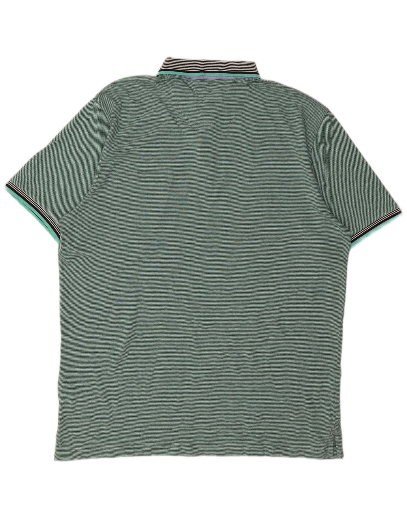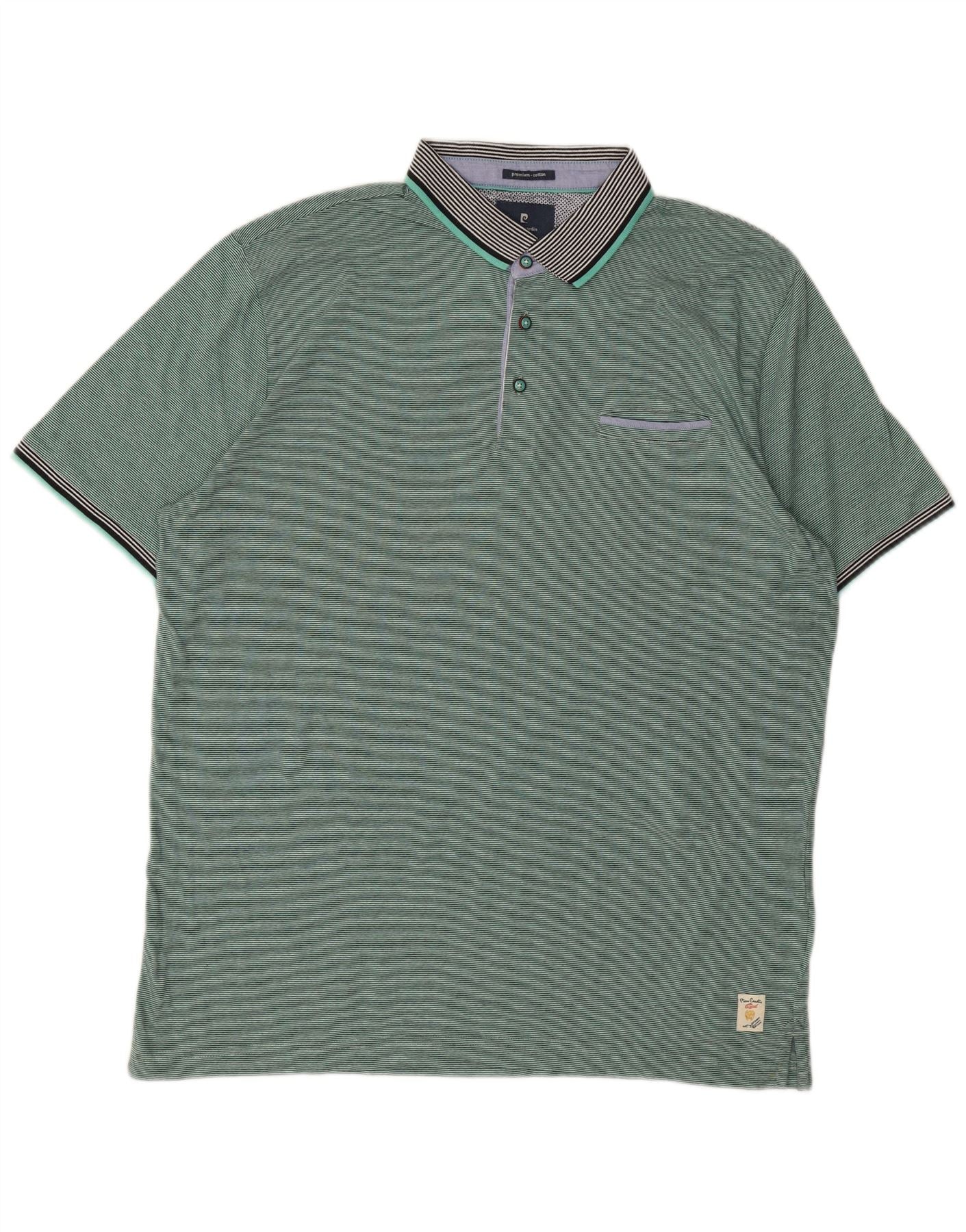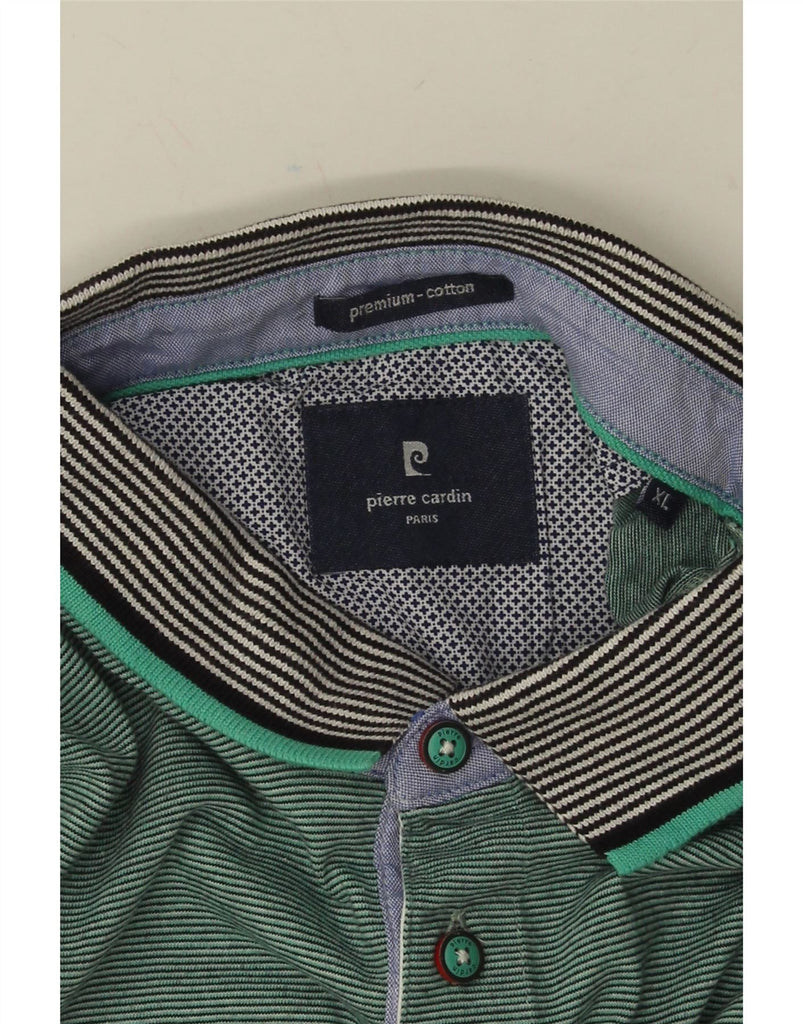 PIERRE CARDIN Mens Paris Polo Shirt XL Green Pinstripe Cotton