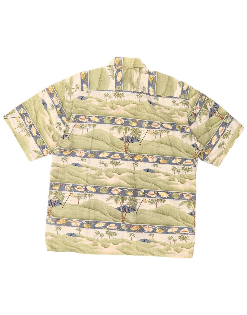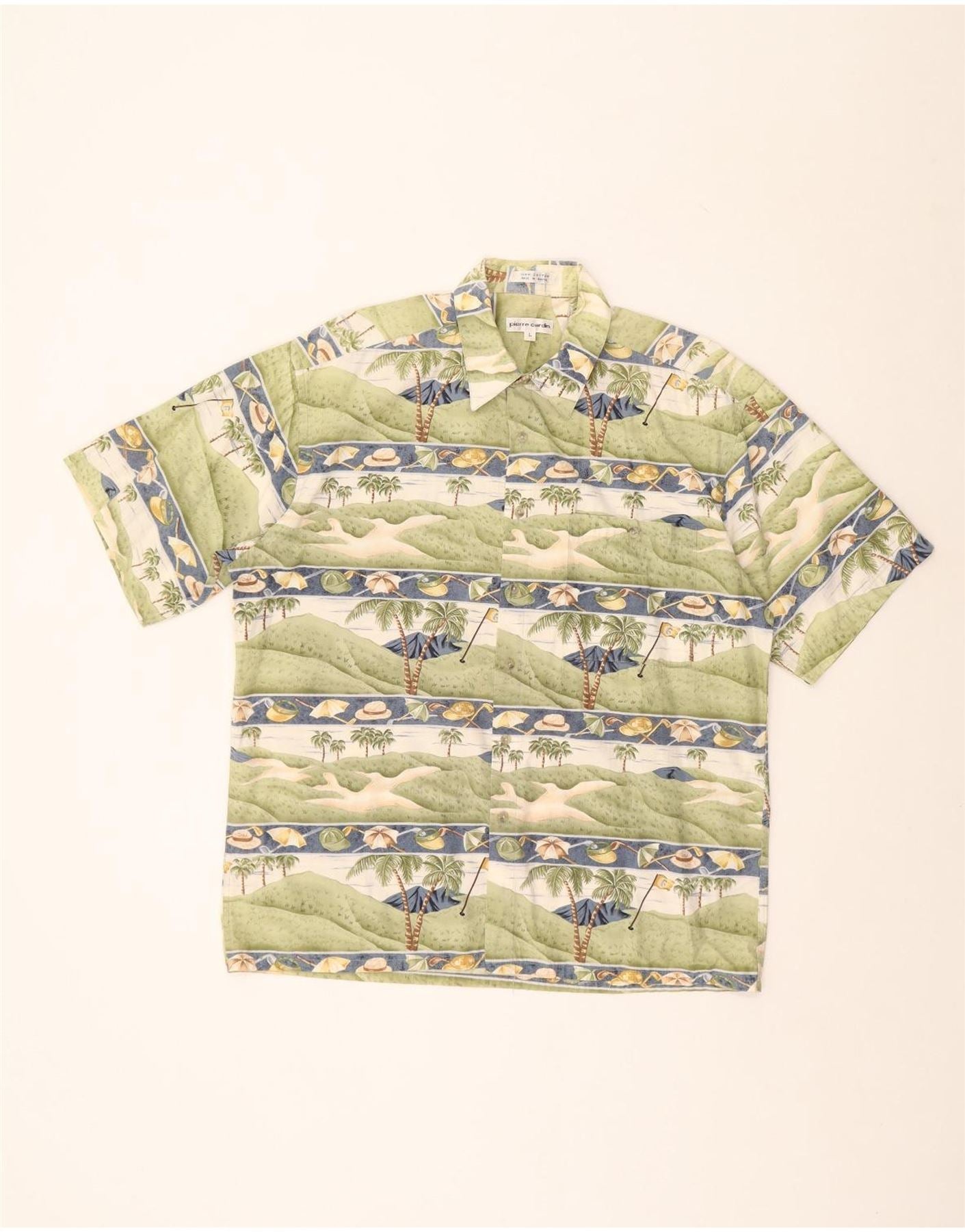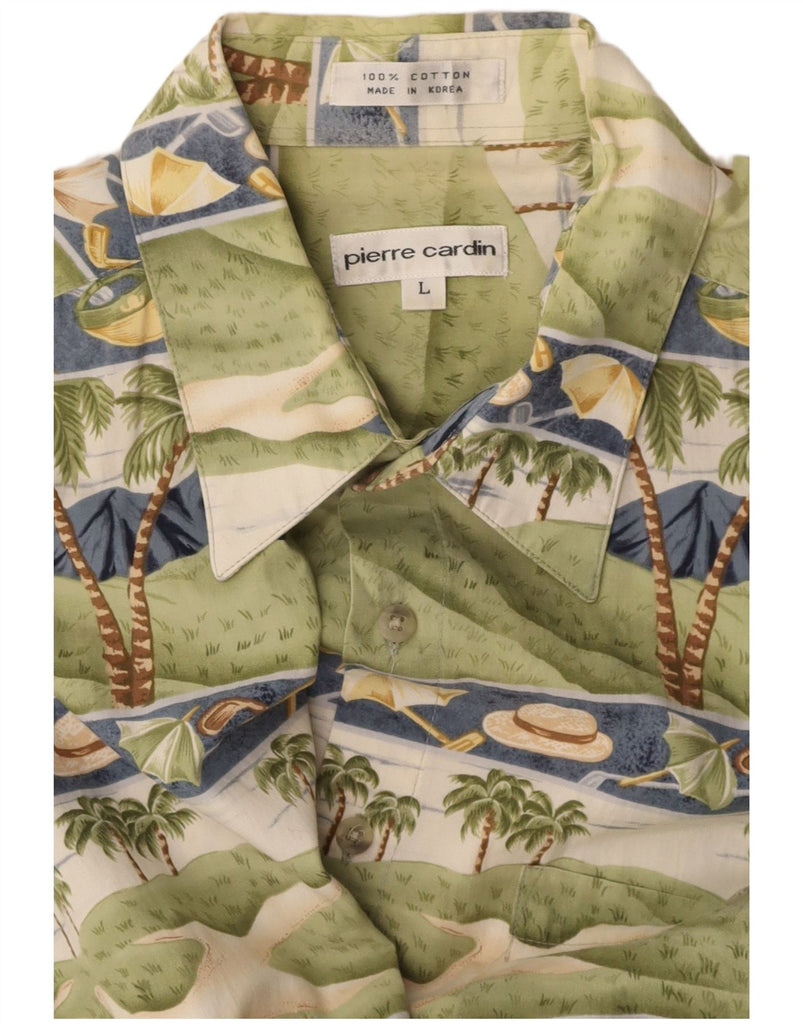 PIERRE CARDIN Mens Short Sleeve Shirt Large Green Floral Cotton Hawaiian