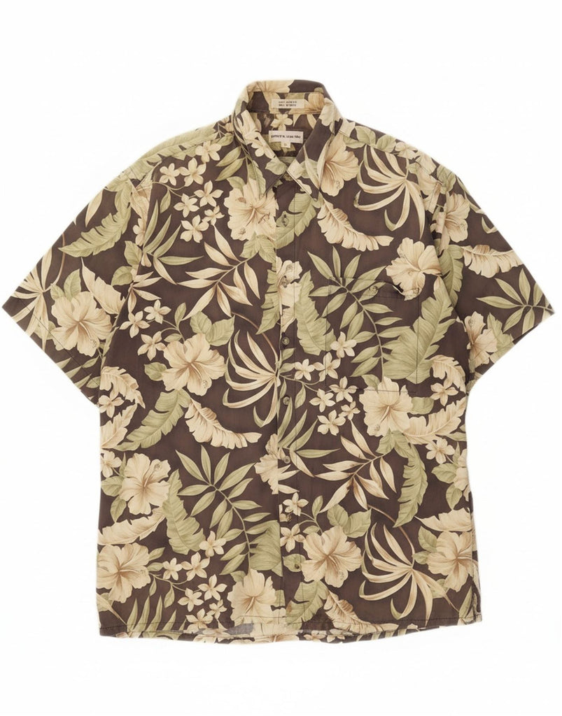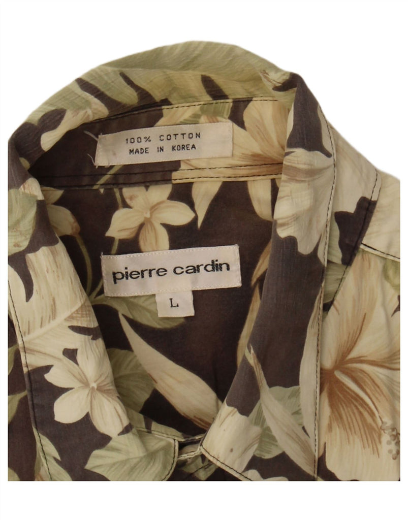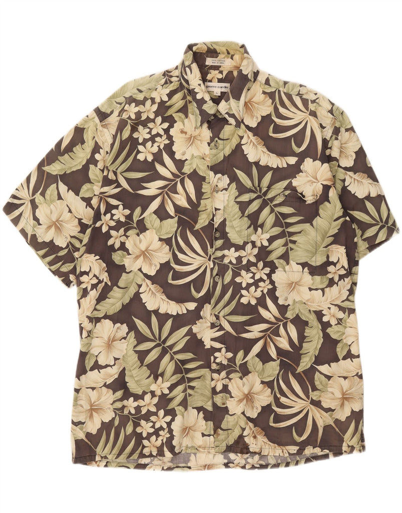PIERRE CARDIN Mens Short Sleeve Shirt Large Grey Floral Cotton