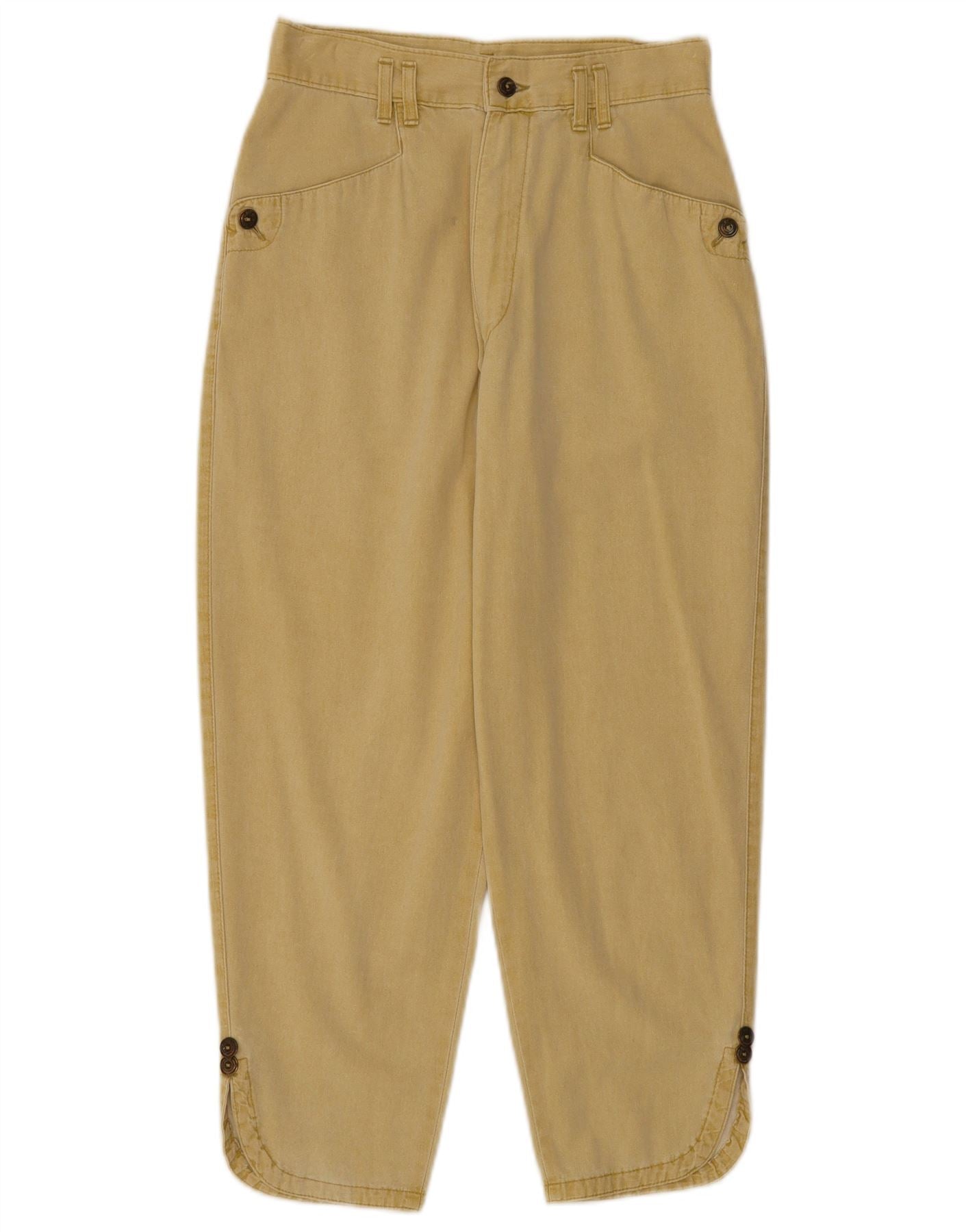 PIONEER Womens High Waist Loose Fit Cropped Trousers W30 L24 Green Cotton