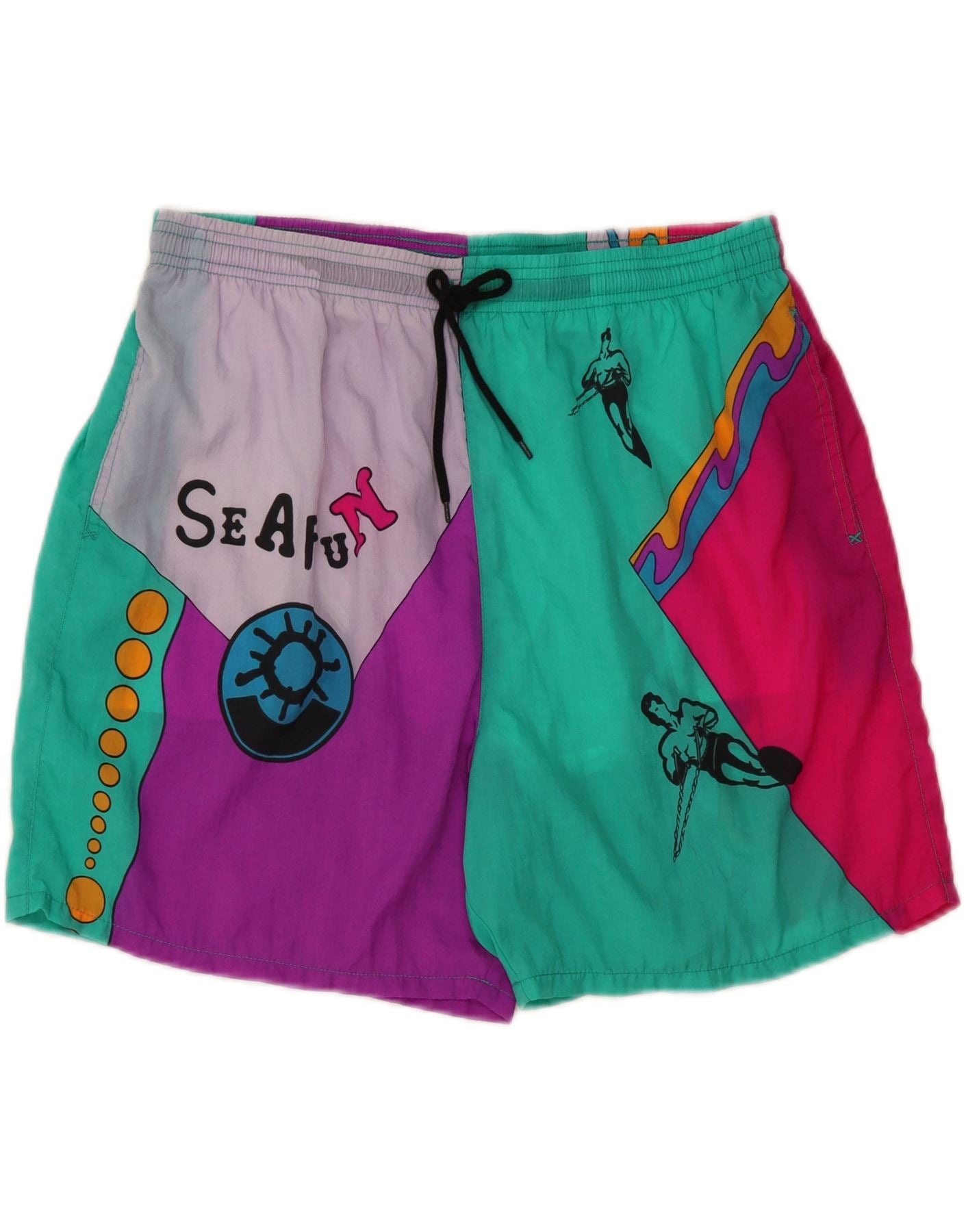 PLAYCREW Mens Graphic Swimming Shorts Large Multicoloured Colourblock