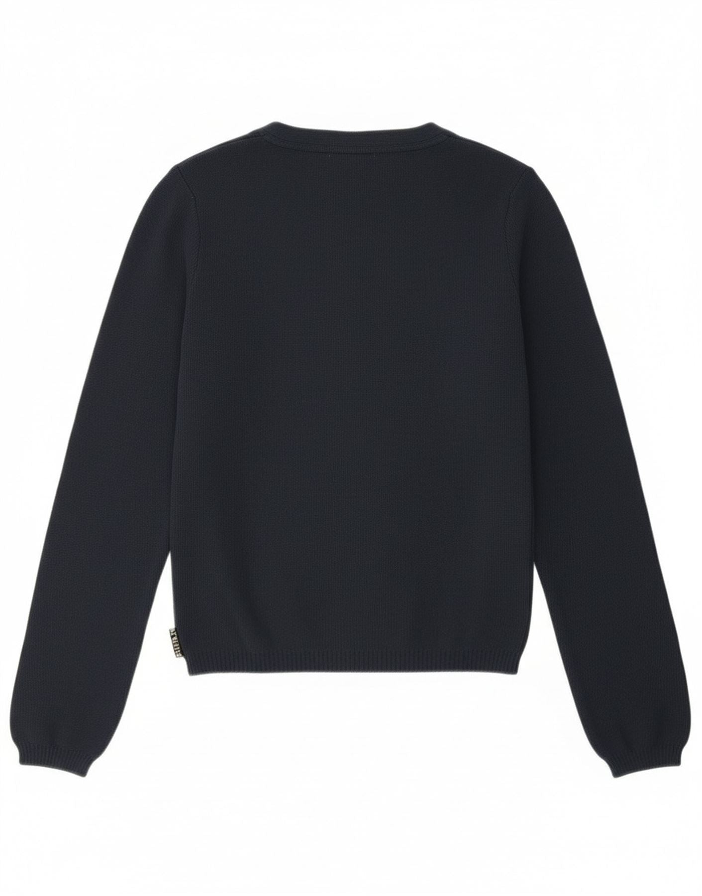 Playlife Womens Crop Cardigan Sweater UK 12 Medium Navy Blue Polyamide