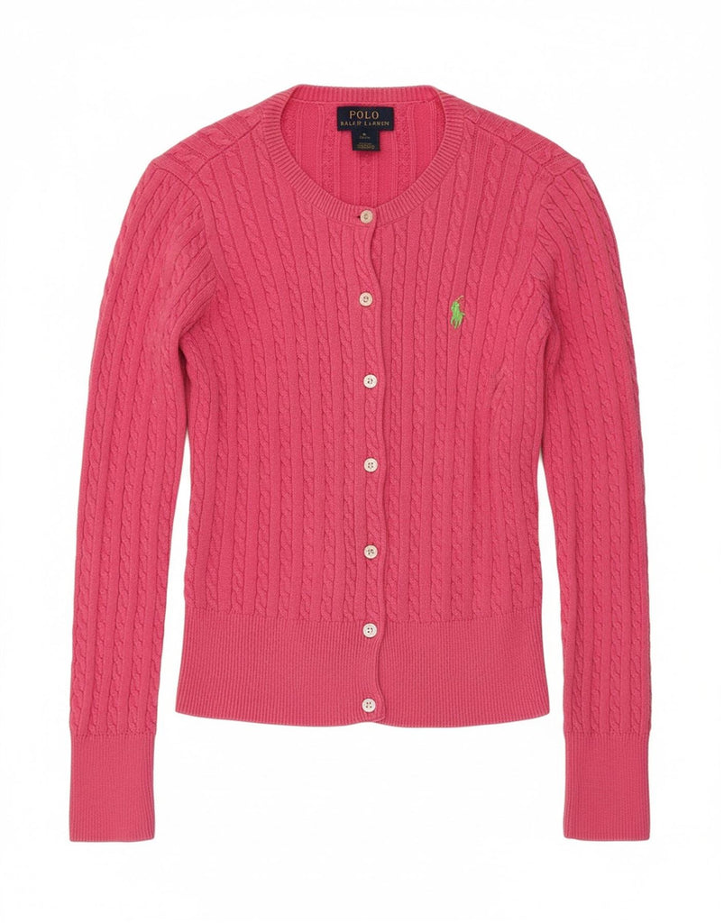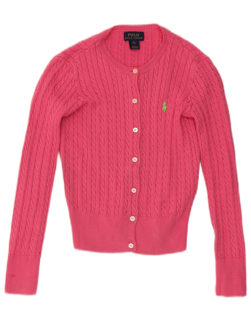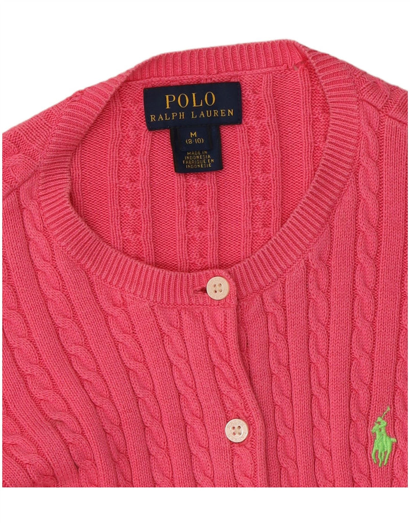 POLO RALPH LAUREN Girls Cardigan Sweater 8-9 Years Medium Pink Cotton