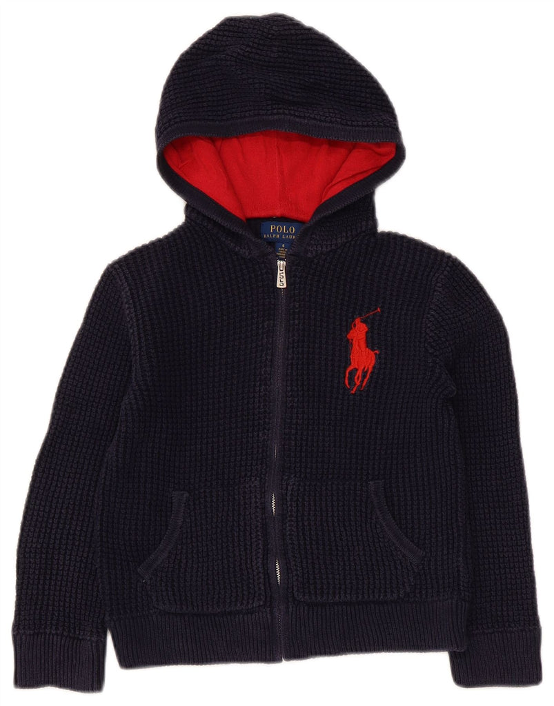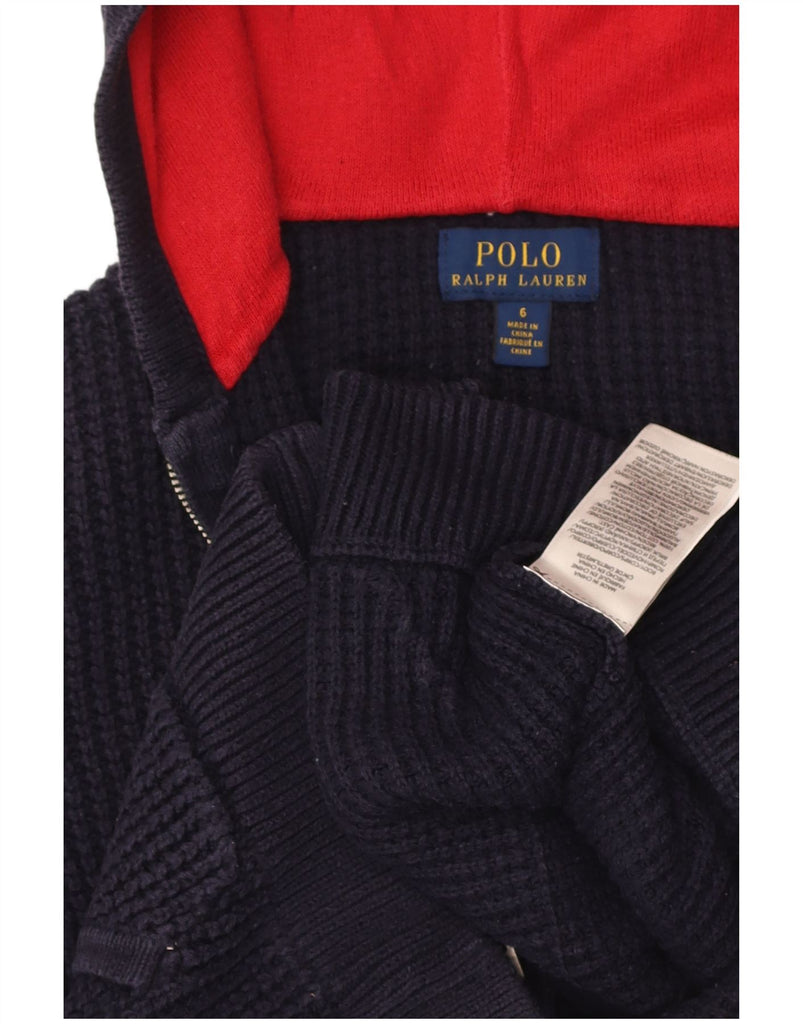 POLO RALPH LAUREN Girls Hooded Cardigan Sweater 5-6 Years Navy Blue Cotton